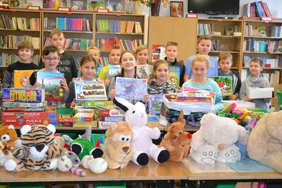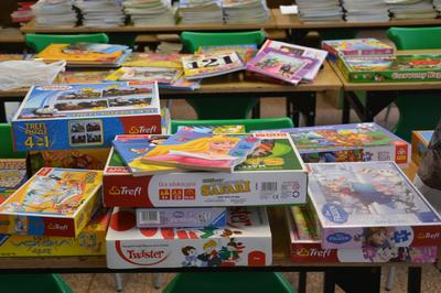 W ramach programu Erasmus+ „Green schools 2.0 for a sutainable future” (Zielone szkoły na rzecz zrównoważonej przyszłości), w dniu 16 listopada br. zorganizowaliśmy na terenie naszej szkoły zbiórkę używanych zabawek, gier i książek. Akcja miała na celu zwrócenie uwagi dzieciom na możliwość ponownego wykorzystania różnych przedmiotów. Wśród przyniesionych rzeczy znalazły się m.in. różnego rodzaju książki, gry planszowe, zabawki pluszowe, puzzle, klocki itp. Wszystkie zgromadzone rzeczy zostały przekazane świetlicy środowiskowej Zgromadzenia Sióstr Służebniczek NMP w Knurowie.