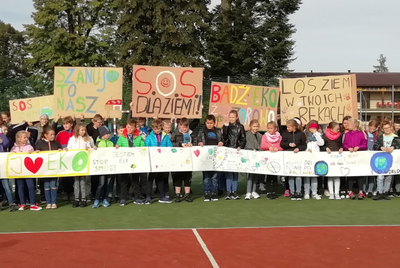 W Szkole Podstawowej im. Jana Pawła II 20 września 2019r. przeprowadzono akcję: „Sprzątania Świata”. Tegoroczne hasło brzmiało: „ Nie śmiecimy, sprzątamy, zmieniamy”. Imprezę rozpoczęła pani dyrektor, która przypomniała zebranym, jaki cel przyświeca tej akcji. Uczniowie klas 4-8 pod okiem p. Barbary Pogody wykonali prace plastyczne, plakaty oraz banery nawołujące do segregowania śmieci i do zbierania odpadów.