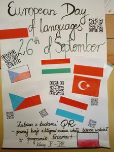 Dnia 26 września 2019 r. odbył się w Naszej Szkole Dzień Języków Obcych. Dla uczniów klas V-VIII zorganizowany został konkurs promujący kraje, z którymi nasza szkoła od 1 września bierze udział w kolejnym projekcie finansowanym ze środków Unii Europejskiej w ramach programu Erasmus+. Są to: Czechy, Holandia, Węgry oraz Turcja. Uczniowie mieli za zadanie pobrać na swoje urządzenia mobilne darmową aplikację do skanowania kodów QR. Plakaty z taką informacją pojawiły się wcześniej na szkolnych korytarzach.