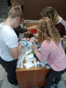 aby wesprzeć misyjne szpitale w Afryce. ,,W misyjnych przychodniach brakuje dosłownie wszystkiego. Każdy bandaż, czy plaster jest na wagę złota. Kiedy przychodzą paczki z Fundacji wtedy jest wielka radość i święto” – piszą lekarze. Akcja w szkole trwała krótko, bo ok. 2 tygodni. Jednak dzięki zaangażowaniu rodziców, uczniów i nauczycieli przyniosła oczekiwany skutek. Nazbieraliśmy ogromne pudło bandaży, plastrów, igieł, strzykawek, rękawiczek, środków dezynfekujących, wenflonów itp. Dziękuję wszystkim za te dary i empatię. Dziękuję uczniom z kl. VII i VIII oraz firmie Wirplast za pomoc w sfinalizowaniu tej akcji.