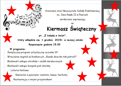 Uczniowie oraz Nauczyciele Szkoły Podstawowej im. Jana Pawła II w Psarach serdecznie zapraszają