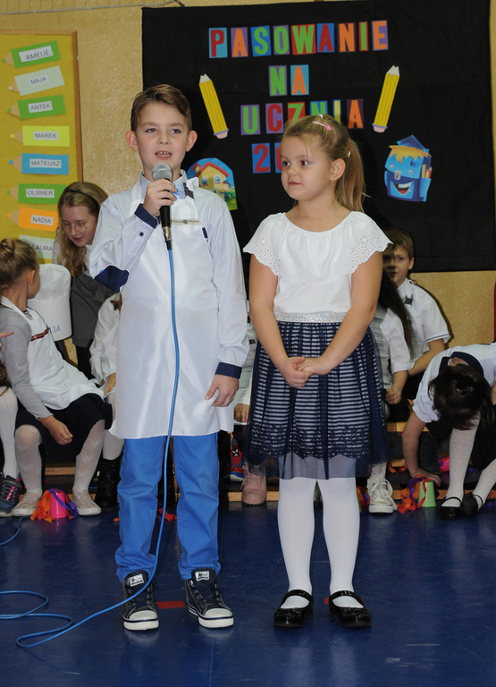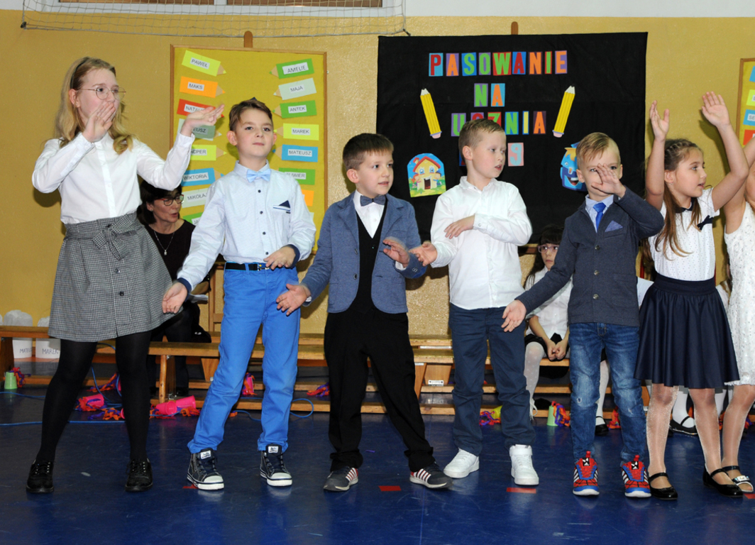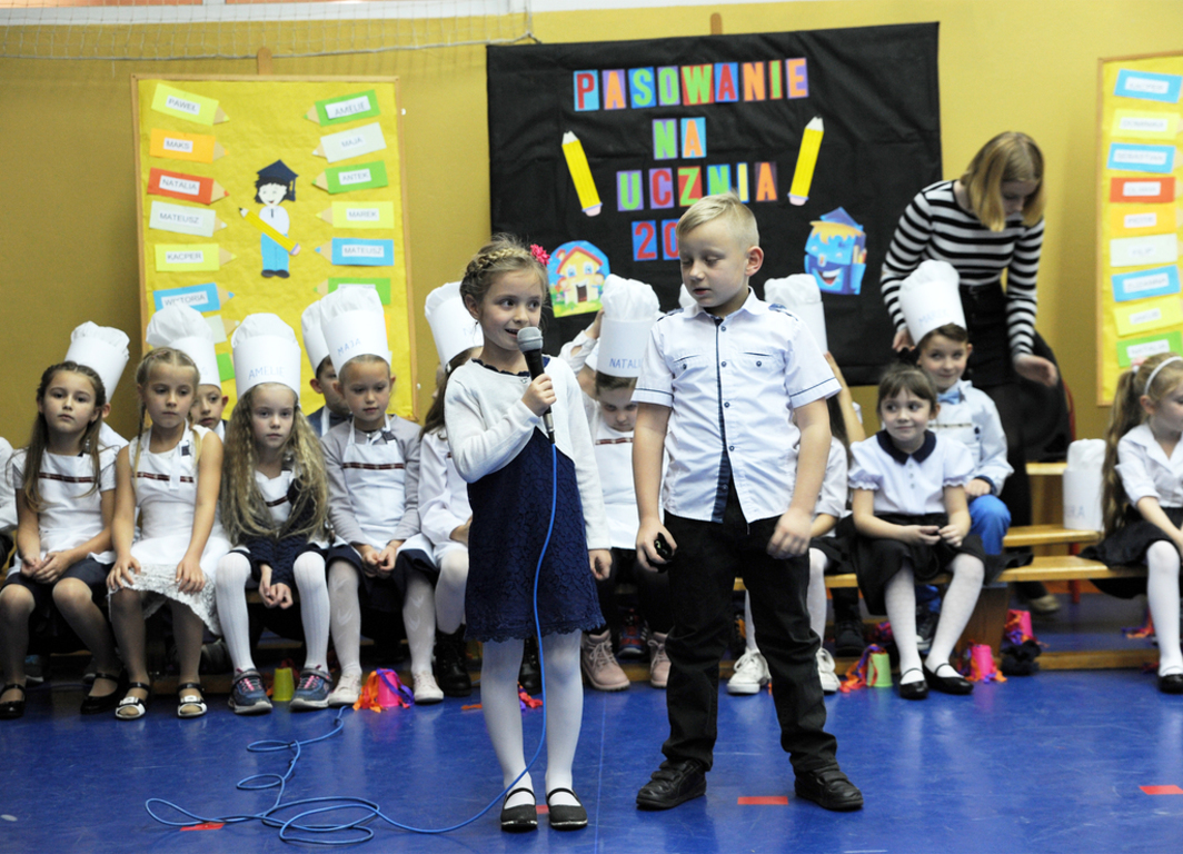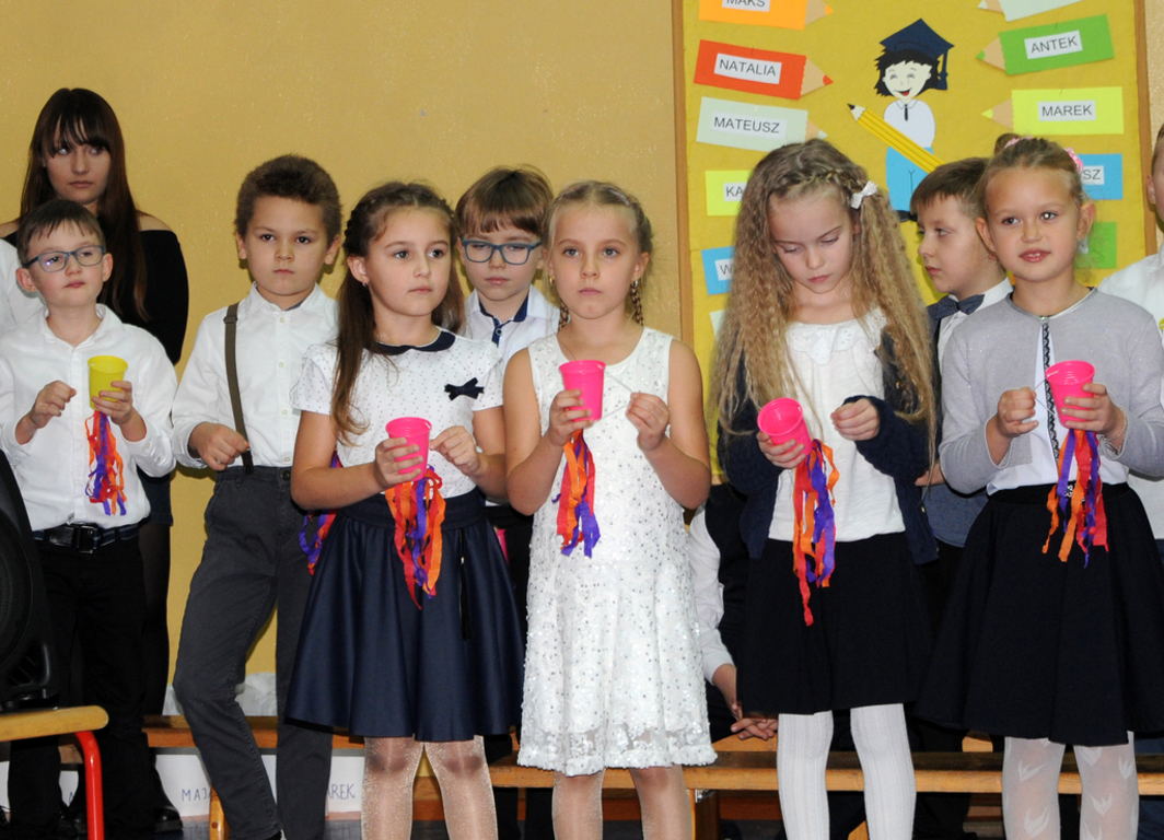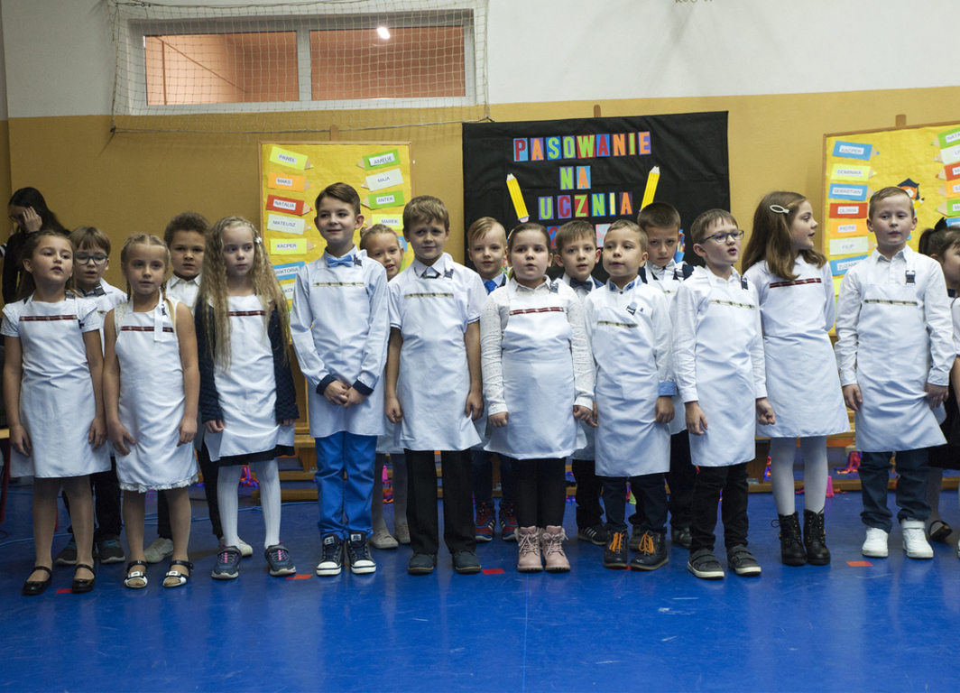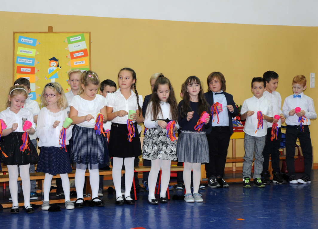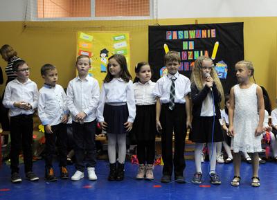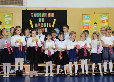 18 listopad był dla naszych pierwszaków bardzo ważnym dniem. Tego dnia po południu w sali gimnastycznej w obecności rodziców i Pani Dyrektor, kl. Ia i Ib zaprezentowały swoje umiejętności recytatorskie, muzyczne i taneczne. Najważniejszym momentem uroczystości było złożenie przez najmłodszych przysięgi uczniowskiej. Po ślubowaniu każdy z pierwszaków dostąpił zaszczytu pasowania na ucznia dokonanego symbolicznym ołówkiem. Dzieci świetnie prezentowały się w stroju galowym oraz uczniowskich biretach. Wzorowo zdały swój pierwszy egzamin udowadniając, że zasłużyły na miano ucznia Szkoły Podstawowej im. Jana Pawła II w Psarach.