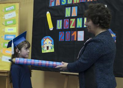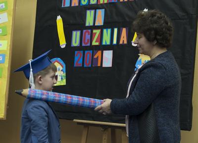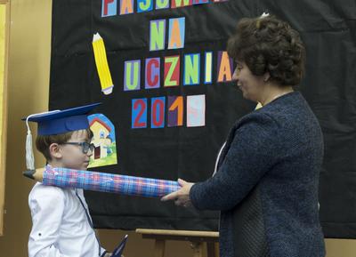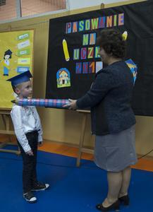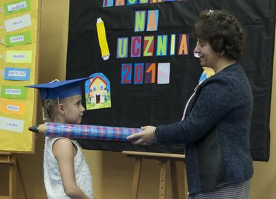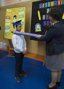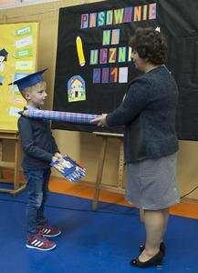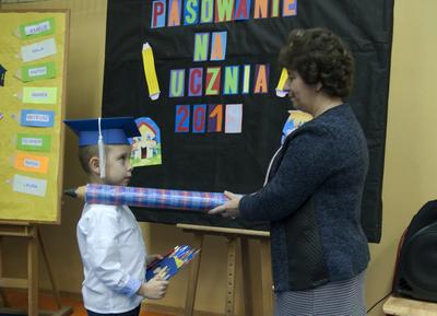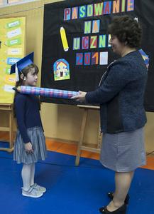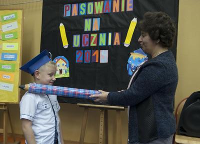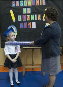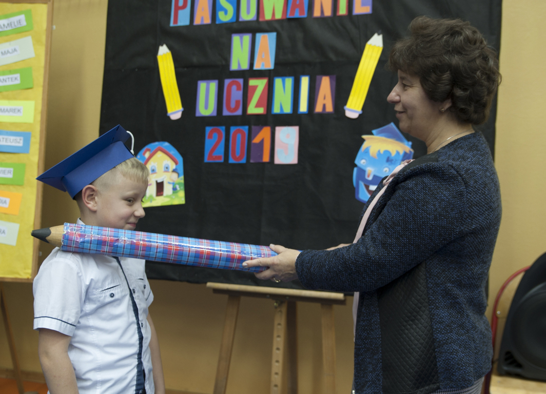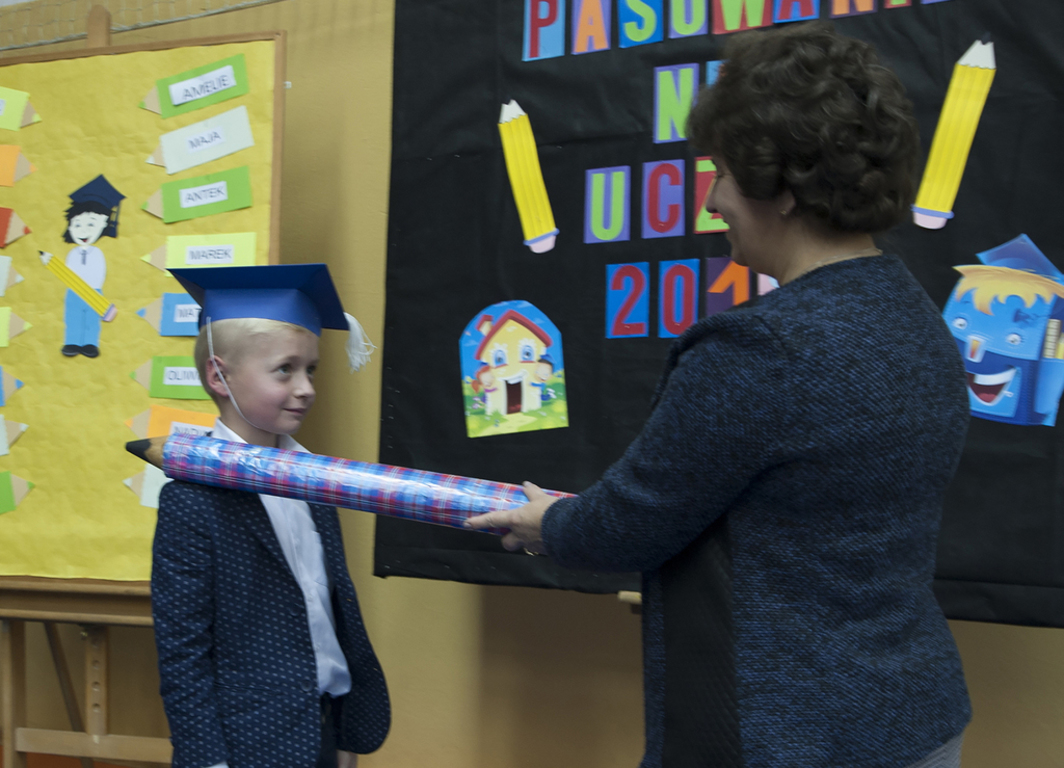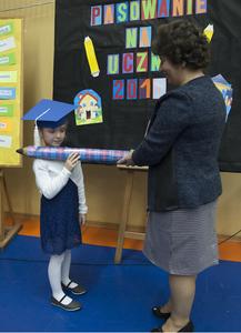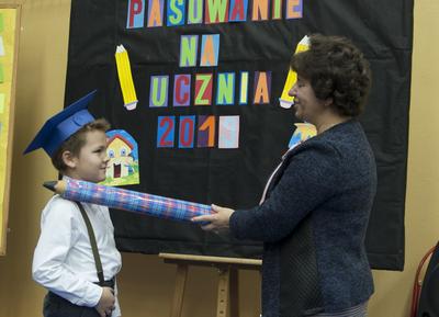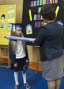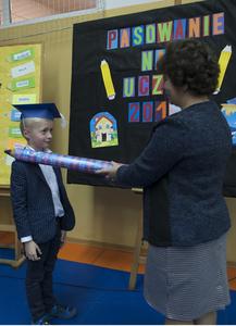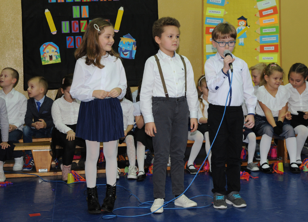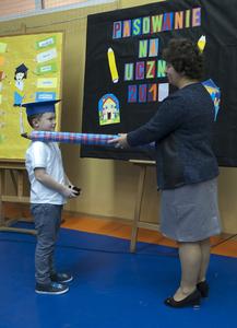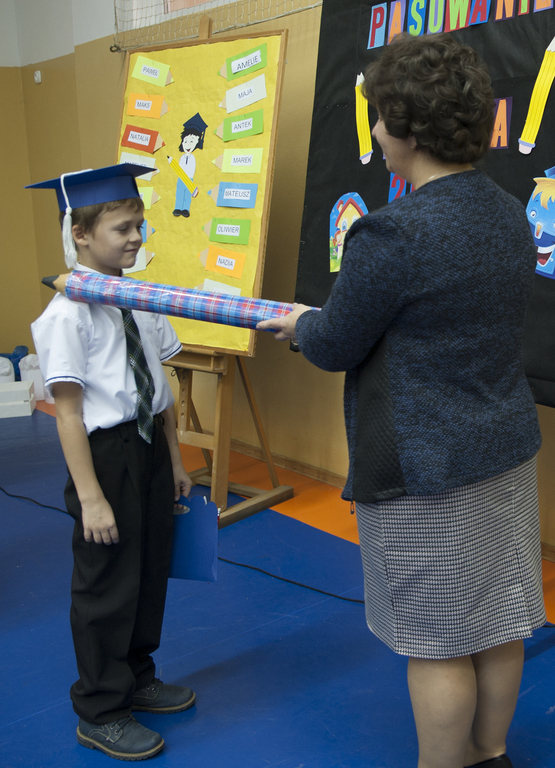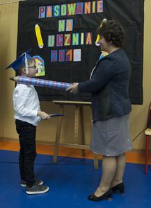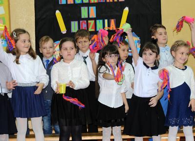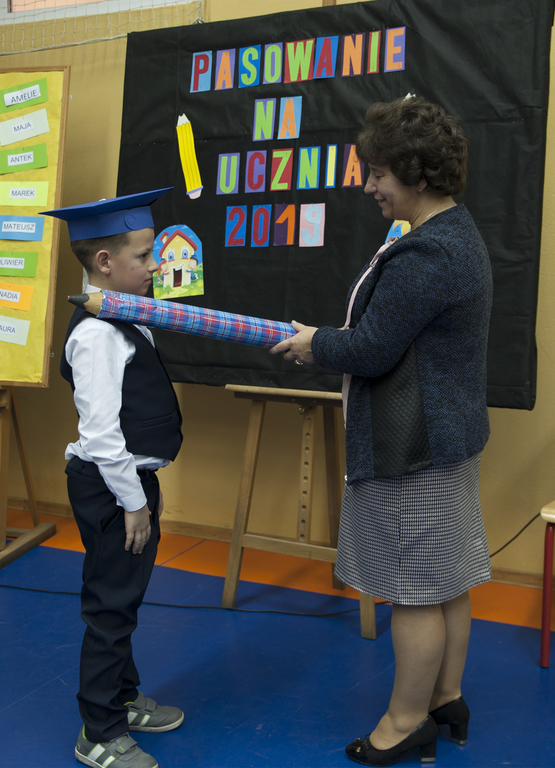 18 listopad był dla naszych pierwszaków bardzo ważnym dniem. Tego dnia po południu w sali gimnastycznej w obecności rodziców i Pani Dyrektor, kl. Ia i Ib zaprezentowały swoje umiejętności recytatorskie, muzyczne i taneczne. Najważniejszym momentem uroczystości było złożenie przez najmłodszych przysięgi uczniowskiej. Po ślubowaniu każdy z pierwszaków dostąpił zaszczytu pasowania na ucznia dokonanego symbolicznym ołówkiem. Dzieci świetnie prezentowały się w stroju galowym oraz uczniowskich biretach. Wzorowo zdały swój pierwszy egzamin udowadniając, że zasłużyły na miano ucznia Szkoły Podstawowej im. Jana Pawła II w Psarach.
