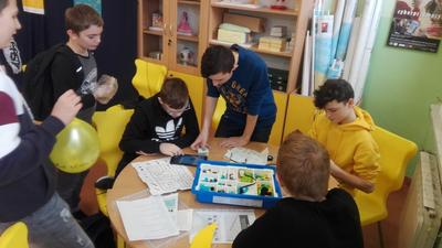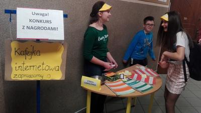 Uczniowie klas starszych wzięli udział w zajęciach, w trakcie których oglądali filmy omawiające tematykę zagrożeń w sieci, sprawdzali swoją wiedzę rozwiązując krzyżówki, testy oraz łamigłówki. Ponadto uczniowie rywalizowali ze sobą w konkursie „Ile wiem o sieci?”. W czasie przerw działała „Kafejka internetowa”, w której uczennice klasy VIa prowadziły konkursy z nagrodami, rozdzielały balony z hasłami promującymi bezpieczne zachowania w sieci, a dla wszystkich chętnych przygotowano „Internetową foto-budkę”. Dużym zainteresowaniem cieszyły się również stanowiska z programowalnymi klockami lego oraz grami „Scottie go”.