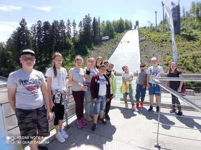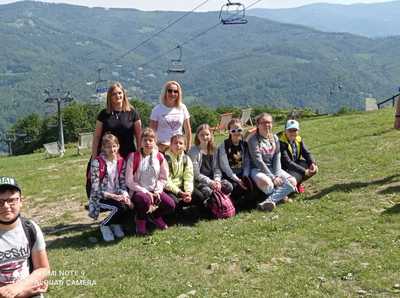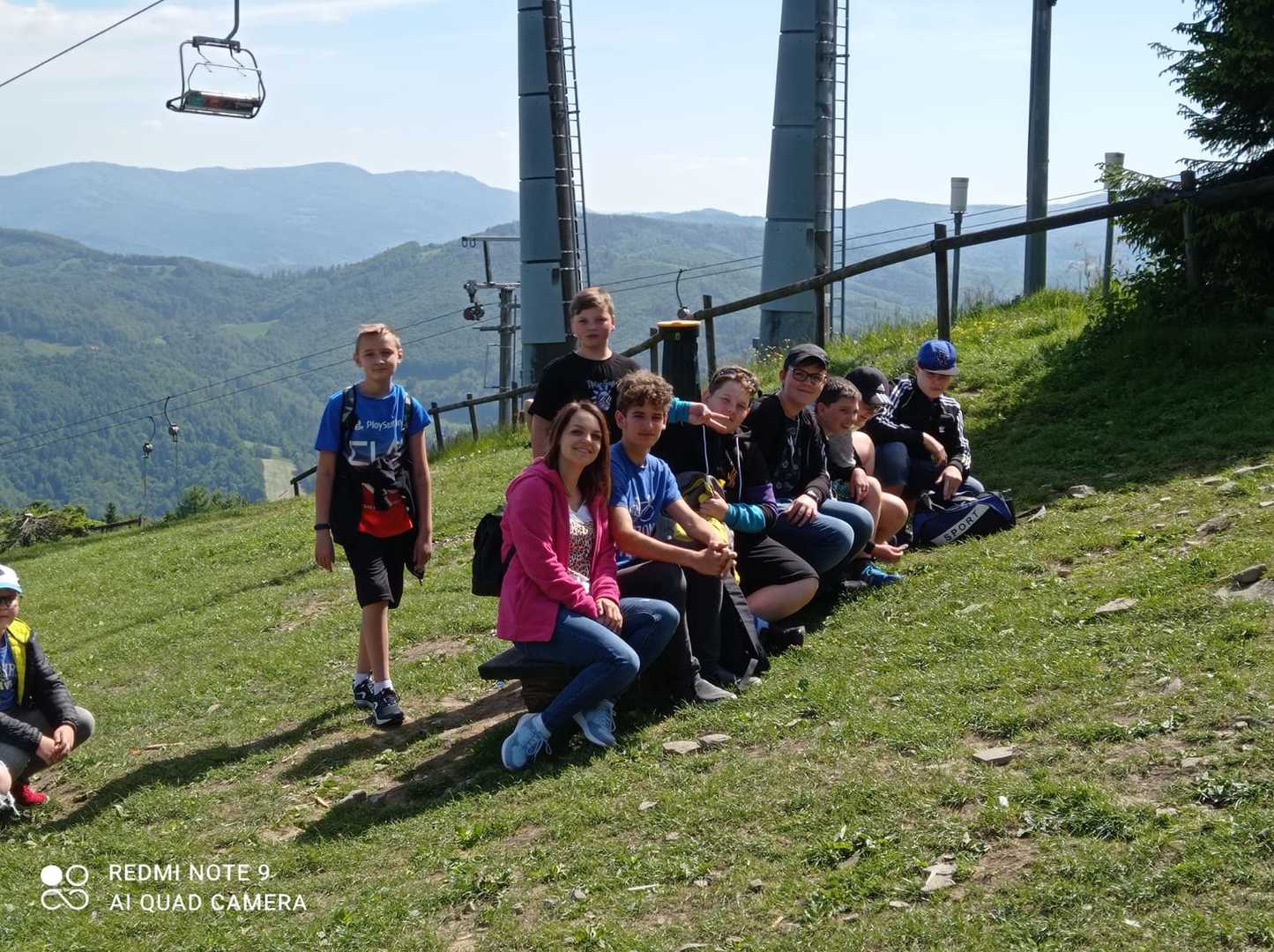 15 czerwca uczniowie klasy V i VIb wraz z opiekunami p.Sylwią Dróżdż, p.Iwoną Gorol, p.Patrycją Gałeczką oraz p.Bernadetą Walentą udali się do Ustronia by tam, koleją linową, zdobyć Wielką Czantorię. Mieliśmy okazję podziwiać wspaniałe widoki roztaczające się na Beskid Śląski. Na Czantorii, uczniowie z wielką radością, zjeżdżali na torze saneczkowym. Odwiedziliśmy również skocznię narciarską im. Adama Małysza w Wiśle-Malince. Ku naszemu zaskoczeniu widzieliśmy Adama Małysza niestety tylko w formie czekoladowej. Spacerowaliśmy wzdłuż zapory na Jeziorze Czerniańskim gdzie łączy się Biała i Czarna Wisełka. W Leśnym Parku Niespodzianek w Ustroniu, wzięliśmy udział w pokazach lotów ptaków drapieżnych. W swobodnym locie ptaków, podziwiać mogliśmy ich siłę, spostrzegawczość i piękno. Podziwialiśmy wspaniałe podniebne i nadziemnych akrobacje sów, myszołowa, jastrzębia, sokoła i orła.W Centrum Edukacji Przyrodniczo-Leśnej oglądaliśmy ekspozycje zwierząt z Ameryki Północnej, Afryki i Europy. Ogromną atrakcją była dla nas możliwość karmienia zwierząt będących w zagrodach oraz tych, które spacerowały po leśnych ścieżkach. Były to m. in. świnki wietnamskie, kozy, muflony, żubry i jelenie. Z terenu Leśnego Parku Niespodzianek i jego miejsc widokowych podziwialiśmy przepiękny krajobraz Beskidu Śląskiego, a w nim odwiedzony przez nas chwilę wcześniej i znajdujący się w przeciwległym paśmie górskim szczyt góry Czantoria.