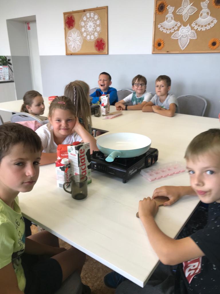 Następnie w filii Domu Kultury odbyły się warsztaty cukiernicze. Uczniowie mieszali tajemne składniki, z których wyszły pyszne krówki.