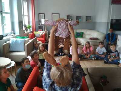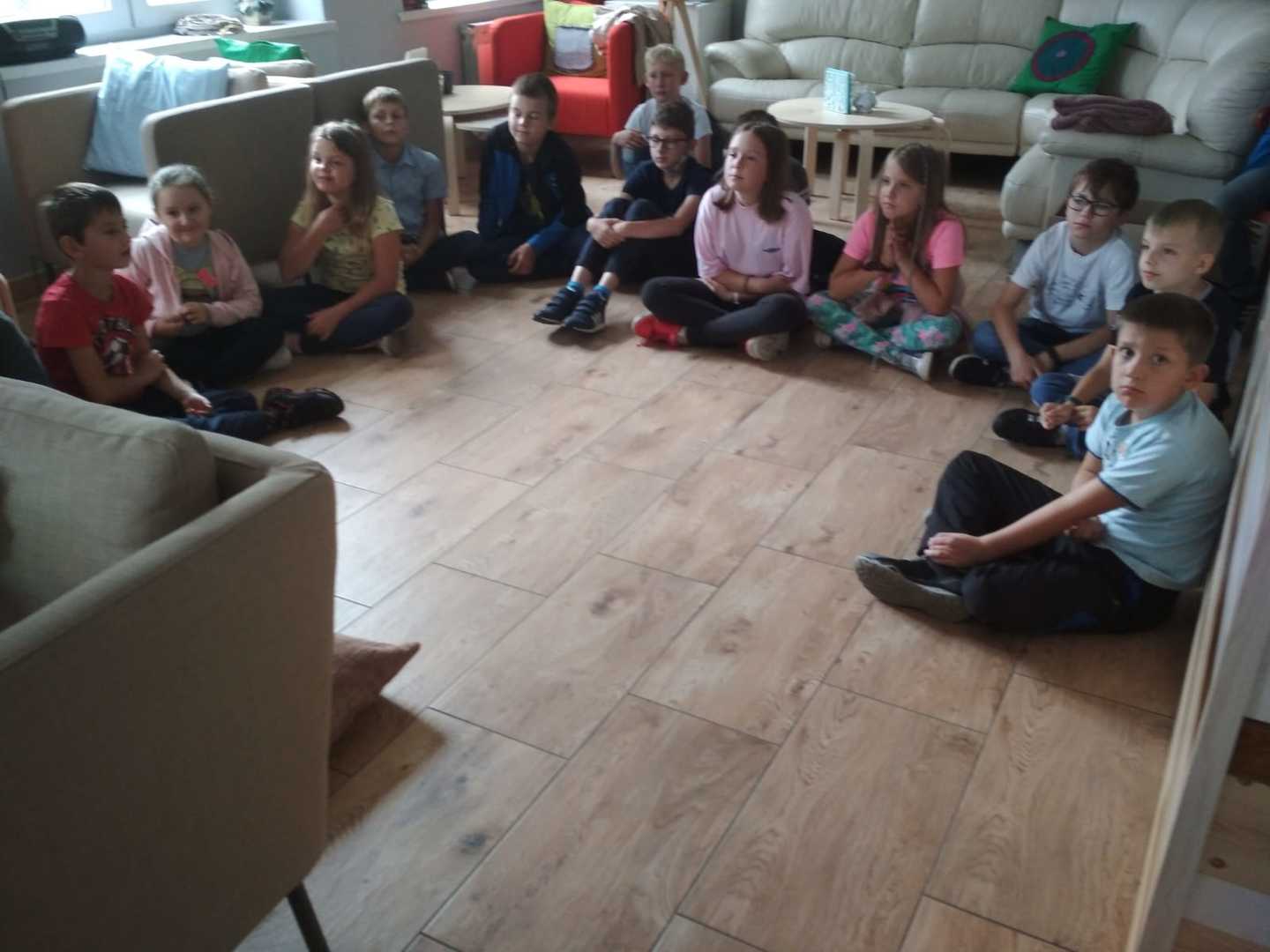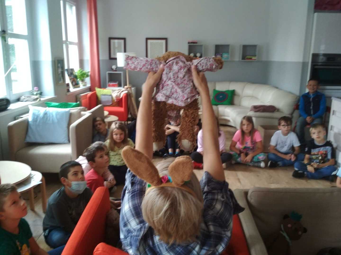 W ostatnim dniu półkolonii uczestnicy najpierw rozwijali umiejętność bycia asertywnym, a potem odgrywali scenki z życia codziennego. Po śniadaniu udali się do filii Domu Kultury, gdzie pod czujmym okiem Pani Gabrieli Mankiewicz uczestniczyli w przedstawieniu teatralym o tolerancji. Na zakończenie wykonały sznureczki przyjaźni.