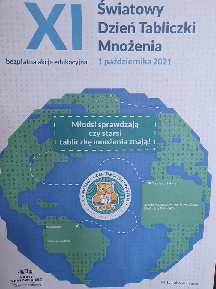 Pierwszego października, po raz pierwszy w naszej szkole został zorganizowany Światowy Dzień Tabliczki Mnożenia. Konkurs ten ma formę zabawy, w trakcie której, w każdej klasie zostaje wyłoniony mistrz tabliczki mnożenia.