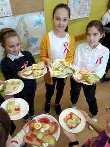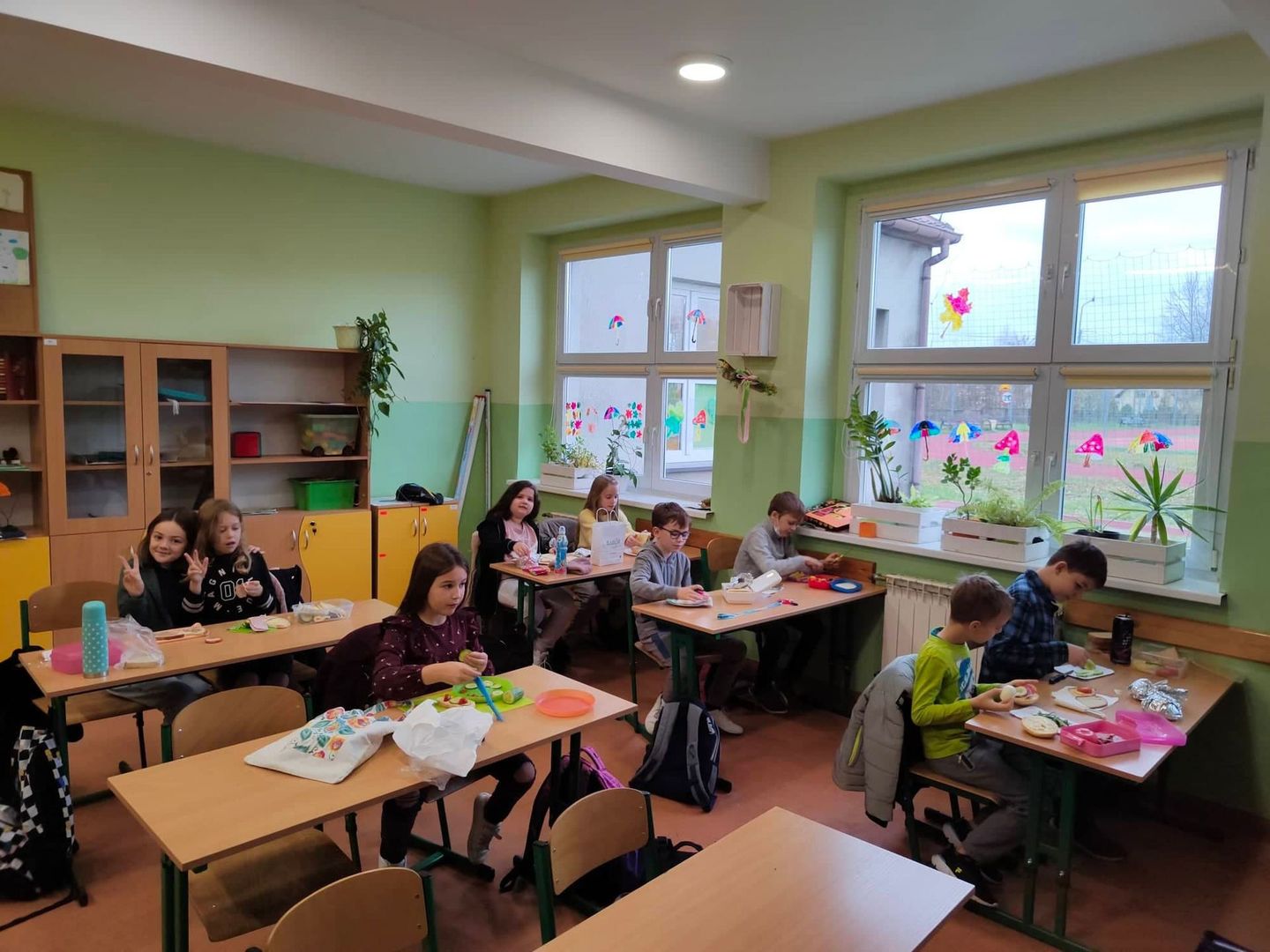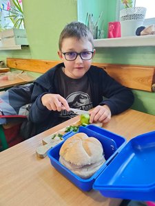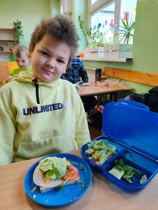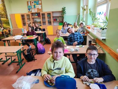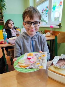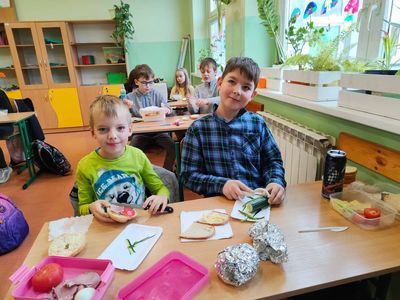 8 listopada i 10 listopada kl. I-III kolejny raz przyłączyły się do Programu Śniadanie daje moc. Najmłodsi uczniowie szkoły poznali zalety zdrowego odżywiania oraz poczuli radość z przygotowania kanapek na drugie śniadanie. Ze względów ograniczeń epidemicznych w zajęciach nie mogli wziąć udział rodzice. Dzieci pod kierunkiem wychowawców doskonale sobie poradziły. Wykorzystały swoje pomysły, umiejętności, dlatego powstały smaczne i zdrowe kanapki. Zajęcia kulinarne zakończono wspólnym śniadaniem w miłym gronie.