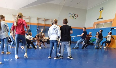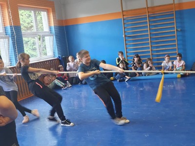 Zabawną częścią zawodów było przeciąganie liny przez uczniów kontra nauczyciele. Wygrali po raz pierwszy nauczyciele.
