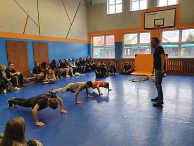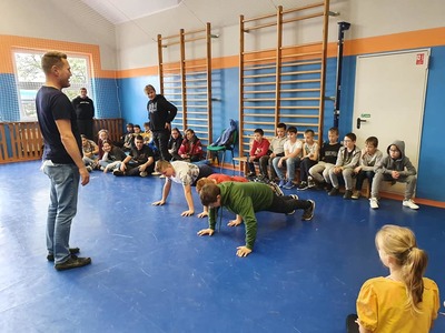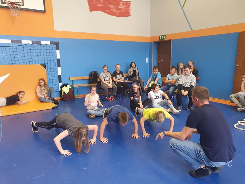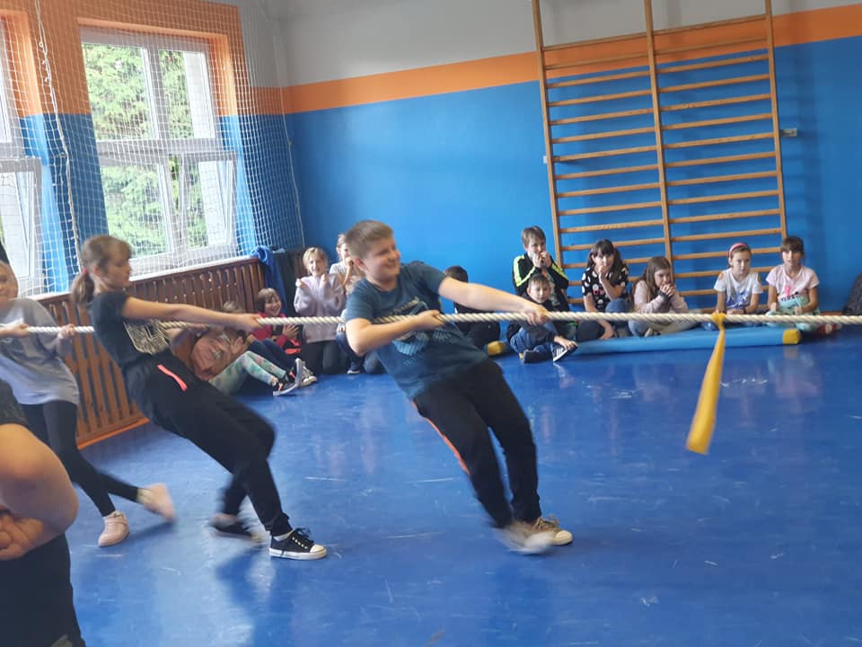Dnia 12.10.2021 roku nauczyciele wychowania fizycznego pani Ewa Koba-Opiełka i pan Sebastian Król zorganizowali SZKOLNY DZIEŃ SIŁACZA dla klas IV-VIII. Sześcioosobowe drużyny z każdej klasy wzięły udział w następujących konkurencjach siłowych:ugięcia ramion w podporze przodem-pompki, przenoszenie piłek lekarskich na czas oraz przeciąganie liny. Wyniki przeprowadzonych konkurencji są następujące.