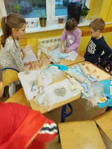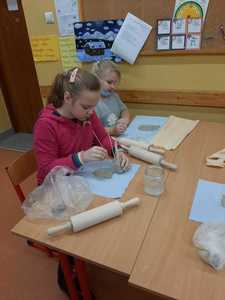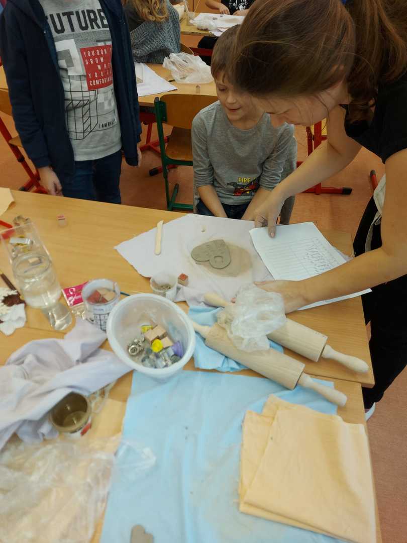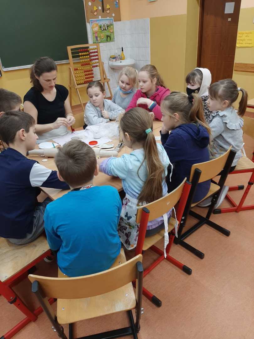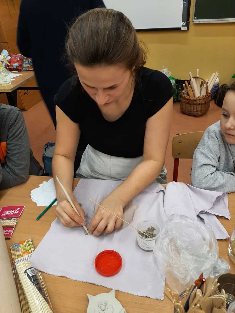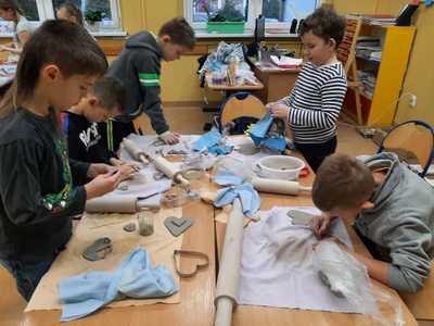 W naszej szkole pani Beata Gałecka z Galerii Gliniane Ludki przeprowadziła wspólnie z nauczycielami zajęcia plastyczne, w trakcie których uczniowie klas 1-3 naszej szkoły poznali tajniki tworzenia w glinie. Mogli również samodzielnie wykonać pracę - prezent dla kochanych babć i dziadków. Prace dzieci zostały później wypalone w Galerii Gliniane Ludki, a następnie ozdobione przez uczniów w szkole. Warsztaty te pozwoliły dzieciom poznać nową technikę i rozwinąć zdolności artystyczne.