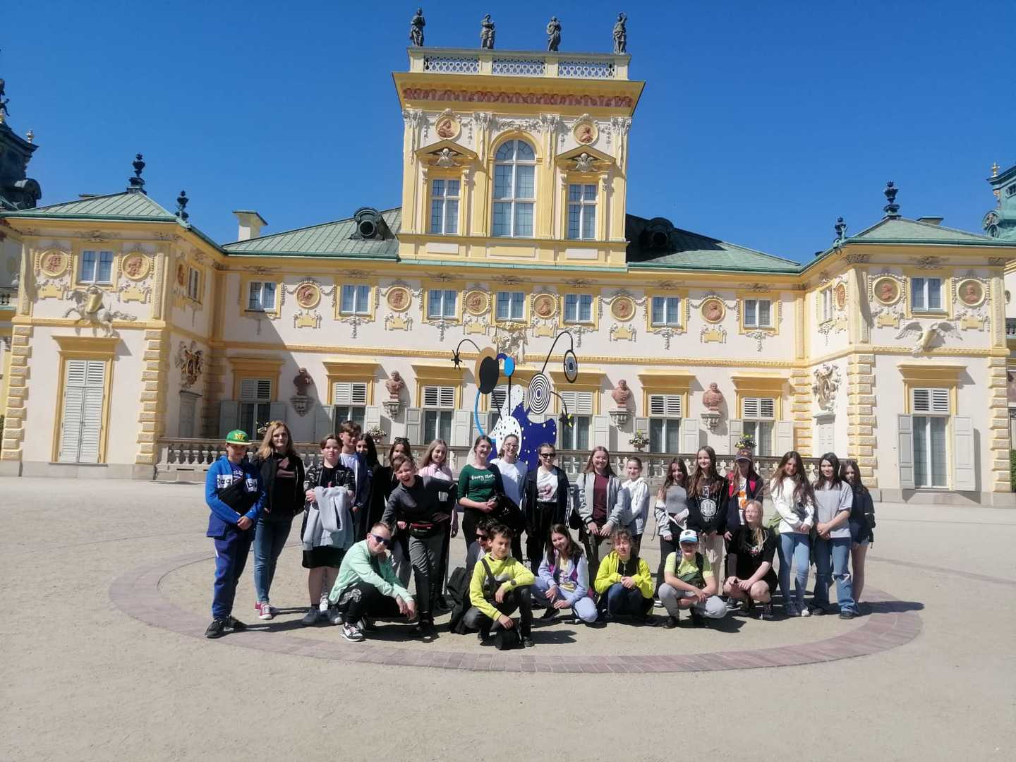 9 maja klasy 7a, klasa 6 oraz 8a pojechały na 3-dniową wycieczkę do Warszawy. Uczniowie wraz z nauczycielami panią Katarzyną Zawadzką, Iwoną Gorol, Sylwią Drózdż oraz panią Bernadetą Walentą mieli okazję być w pałacu oraz ogrodzie w Wilanowie. Tam uczniowie uczestniczyli w lekcji muzealnej. W pierwszym dniu, z wysokości trzydziestego piętra pałacu Kultury i Nauki, podziwiali panoramę Warszawy. W kolejnych dniach uczniowie odwiedzili urokliwe Łazienki Królewskie oraz Stare Miasto. Ważnym punktem wycieczki było zwiedzanie Muzeum Narodowego, Muzeum Powstania Warszawskiego oraz Muzeum Historii Żydów Polskich POLIN. Zwiedzając Centrum Nauki Kopernik mogli poznawać prawa nauki poprzez samodzielne przeprowadzanie doświadczeń na interaktywnych wystawach.