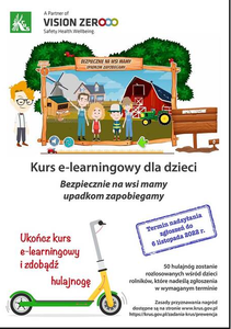 potwierdzający ukończenie kursu e-learningowego pt. "Bezpiecznie na wsi mamy - upadkom zapobiegamy" wraz z formularzem zgłoszeniowym.
