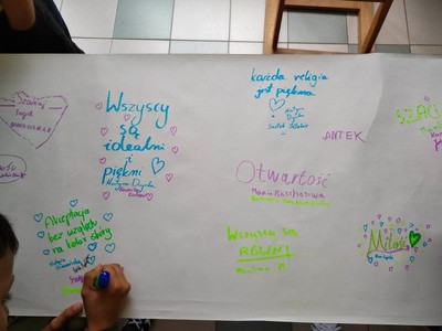 Uczniowie mieli możliwość wzięcia udziału w konkursie pt. „Przepis na tolernację”, zobaczyli prezentacje multimedialną oraz wykonali plakaty propagujące tolerancję i życzliwość.