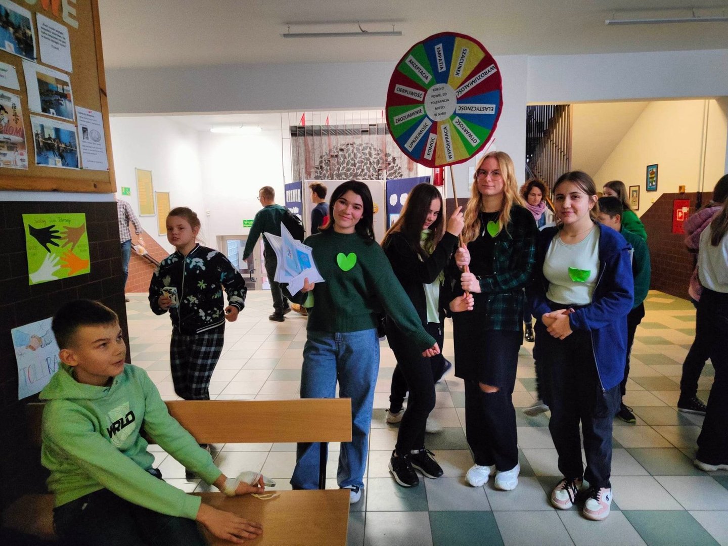 W ramach obchodów Międzynarodowego Dnia Tolerancji przypadającego na dzień 16 listopada w naszej szkole zrealizowano szereg zadań. W ramach akcji pod hasłem „Od dziś zaczynamy wszystko od nowa” uczniowie i nauczyciele przyszli do szkoły w strojach koloru zielonego, ponieważ symbolizuje on życzliwość i tolerancję.