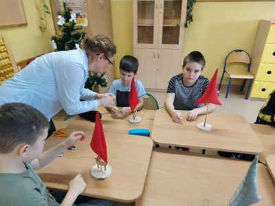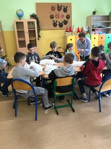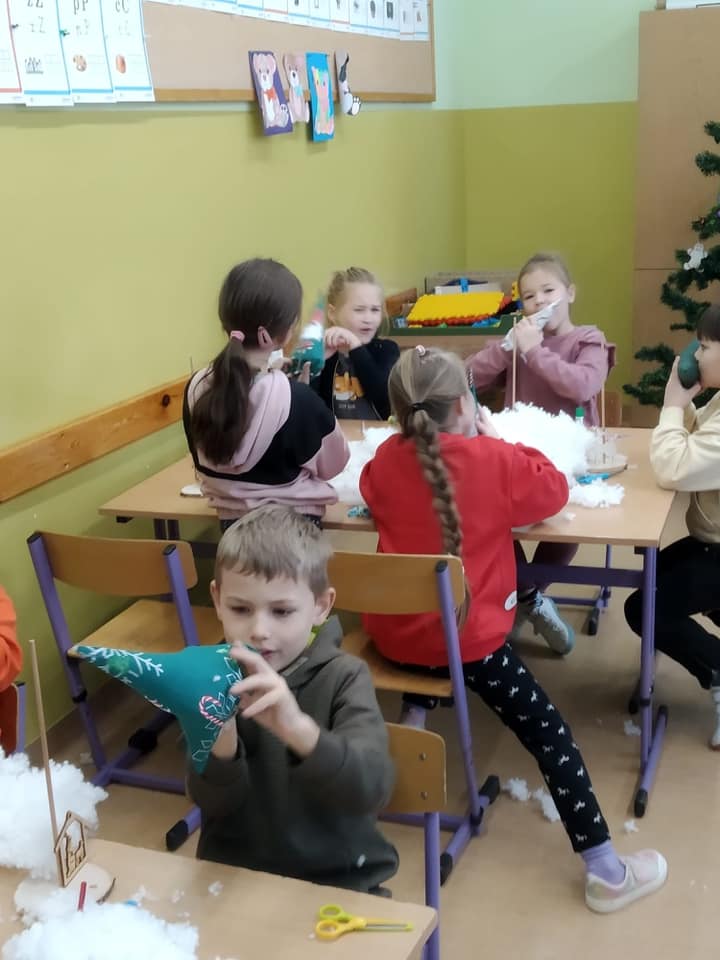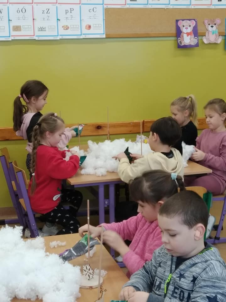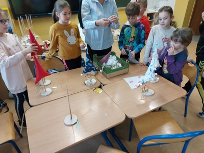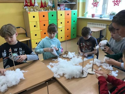 W dniu 13 i 14 grudnia odbyły się w klasach I-III warsztaty świąteczne robienia choinek. Nauczycielki wraz z Panią Kariną Pilarską pomogły dzieciom szyć, wypełniać oraz ozdabiać choinki. Dzieciom bardzo podobały się zajęcia, a wykonane przez nich prace napewno ozdobią świąteczne stoły.