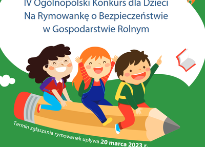 W Konkursie mogą uczestniczyć dzieci urodzone w latach 2008-2012, których przynajmniej jeden z rodziców lub opiekun prawny w okresie przyjmowania zgłoszeń podlega ubezpieczeniu społecznemu rolników. Zadanie konkursowe polega na ułożeniu rymowanki (min. 4 wersy) popularyzującej sposoby ograniczania ryzyka oddziaływania substancji szkodliwych na istoty żywe i skażenia środowiska naturalnego w gospodarstwach rolnych. Kompletne zgłoszenie (rymowankę oraz wypełniony formularz zgłoszeniowy) należy przesłać w terminie do dnia 20.03.2023 r. pocztą tradycyjną (liczy się data stempla pocztowego) lub elektroniczną na adres Oddziału Regionalnego KRUS, w którym podlega ubezpieczeniu rodzic/opiekun prawny dziecka.