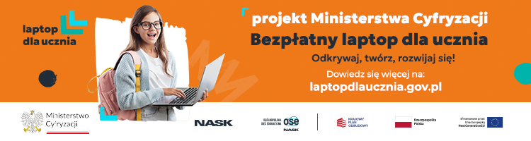 Przypominamy, że działa już portal https://laptopdlaucznia.gov.pl/, na którym wszyscy zainteresowani znajdą nie tylko informacje na temat programu „Laptop dla ucznia”, ale także m.in. materiały edukacyjne oraz listę darmowego oprogramowania do wykorzystania na laptopach.