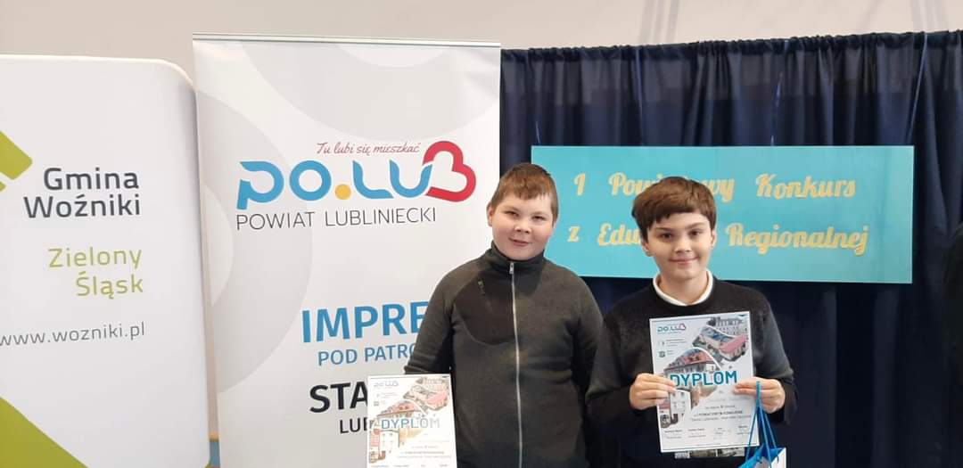 23 listopada w Szkole Podstawowej im. Powstańców Śląskich w Kamienicy odbył się I Powiatowy Konkurs z Edukacji Regionalnej, w którym nasza drużyna w składzie Szymon Cichowski i Nikodem Maślaniec zdobyła 3 miejsce. Gratulujemy!