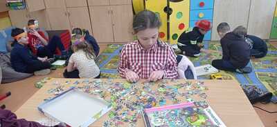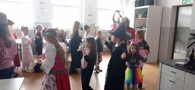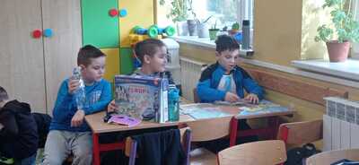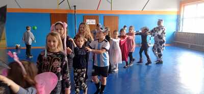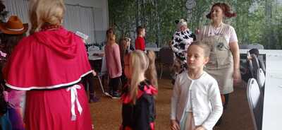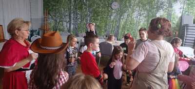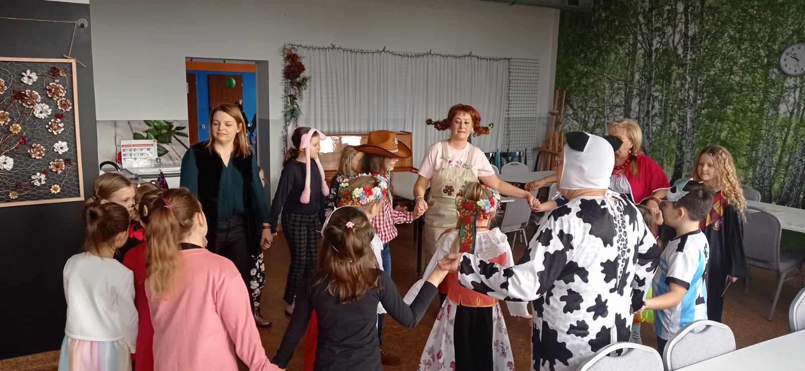Ostatni dzień półkolonii rozpoczął się od tańców i śpiewów z paniami Koła Gospodyń Wiejskich. Dzieci przebrane w stroje mogły poruszać się w rytm muzyki. Po śniadaniu rozegrano turniej gier planszowych. Uczniowie rywalizowali, że sobą ucząc się przy tym zasad fair-play. Na zakończenie po zajęciach profilaktycznych dotyczących rozwiązywania konfliktów bez użycia siły dzieci otrzymały słodki poczęstunek.