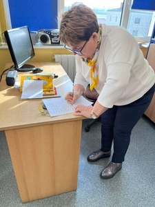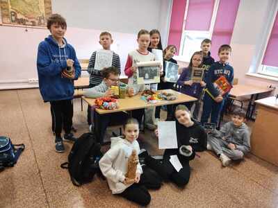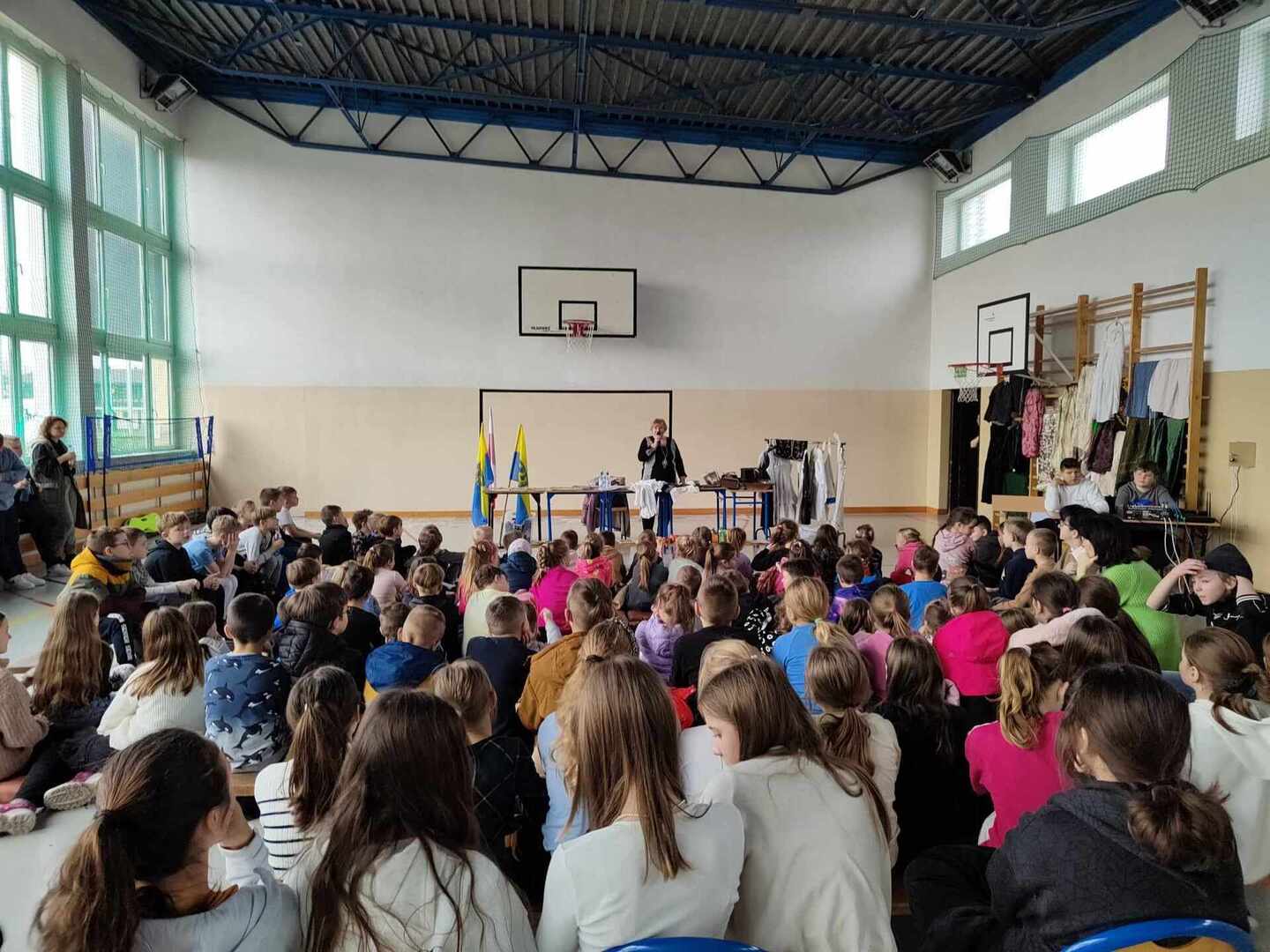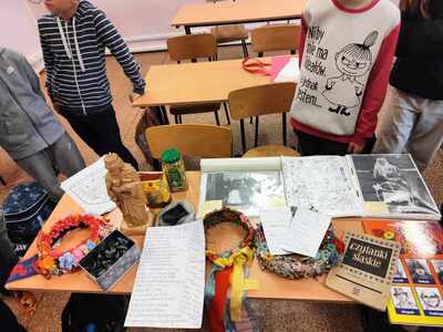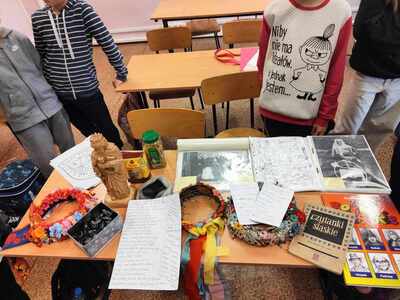 Korzystając okazji, chcielibyśmy serdecznie podziękować p. Irenie Matyl za prezentację śląskiej garderoby i innych pamiątek związanych z naszym regionem oraz za cierpliwość w odpowiadaniu na pytania dzieci.