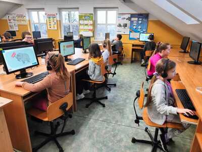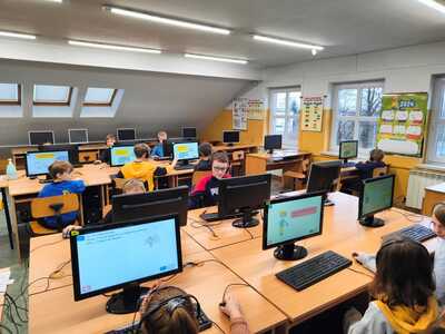 Od 19 lutego w naszej szkole prowadzone są zajęcia edukacyjne dotyczące cyberbezpieczeństwa. Najmłodsi uczniowie oglądali bajki z serii „Owce w sieci”. Zajęcia edukacyjne opierały się na kursach zamieszczonych na stronie https://it-szkola.edu.pl. W klasach 2 - 3 był to kurs pt. "Internetowa szkoła słonia Spacjusza"; W klasach 4-6 "Przygody Profesora i N@tki, czyli jak mądrze korzystać z Internetu”. Uczniowie klas 2, 3 i 5 tworzyli i rozwiązywali krzyżówki obrazkowe i krzyżówki z hasłem w generatorze krzyżówek online oraz łamigłówki z zakresu bezpieczeństwa w sieci. Uczniowie klas 7 i 8 obejrzeli bajkę "Owce w sieci – Papla" - poruszającą tematykę wyłudzania danych osobistych i informacji majątkowych – tzw. phishingu oraz "Owce w sieci – Bez kożuszka" - kurs dotyczący zagrożeń związanych z publikacją kompromitujących zdjęć i nagrań w Internecie. Obejrzeli także film "Cyberprzemoc – prześmiewcze serwisy internetowe" - przygotowany przez Dyżurnet.pl. poruszający zagadnienia zgłaszania naruszeń do moderacji oraz korzystania z „prawa do zapomnienia”. Najstarsi uczniowie wykonali prezentacje na temat hejtu w Internecie.
