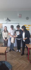 W dniu 26 listopada 2024r. odbył się w Szkole Podstawowej w Wożnikach XIV Gminny Konkurs Poprawności Językowej. Nasi uczniowie kolejny raz spisali się świetnie. Drużyna w składzie: Szymon Cichowski, Julia Hanulok i Nikodem Maślaniec zajęła I miejsce, natomiast indywidualnie Julia Hanulok zajęła miejsce III. Gratulujemy!