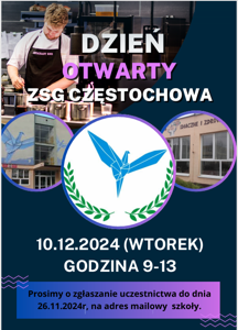 Zaproszenie na dzień otwarty w ZSG w Częstochowie Zdjęcia Załączniki plakat (2) [6.92 MB] Zobacz również Wybieram szkołę. Informator o szkolnictwie ponadpodstawowym... Aplikacja pomoże wybrać uczniom zawód Doradztwo zawodowe - postaw na przyszłość Zaproszenie na dzień otwarty w ZSG w Częstochowie Barometr zawodów - prognoza „Młodzi technicy na europejskich praktykach zawodowych” 08 listopada 2024 Doradztwo zawodowe Wydrukuj Udostępnij Wyświetlono: 44