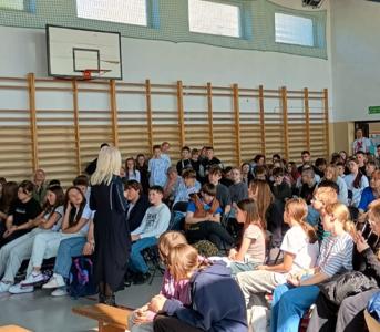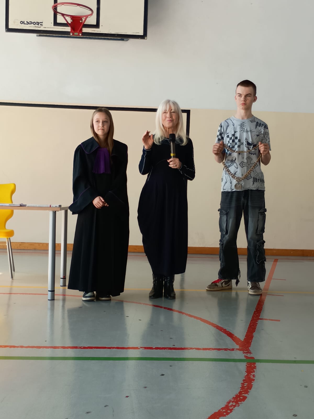 3 kwietnia odbyło się w naszej szkole spotkanie z Sędzią Anną Marią Wesołowską, ktore miało charakter profilaktyczny, a zorganizowane zostalo przez CUS w Woźnikach. Uczniowie wysłuchali bardzo ciekawego wykładu, zadawali pytania dot. pracy sędziego i dowiedzieli się o konsekwencjach łamania przepisów.