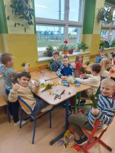 Dziękujemy Pani Beacie za organizację warsztatów i wszystkim rodzicom za dostarczone materiały i bukszpan tak potrzebny do wykonania palm.