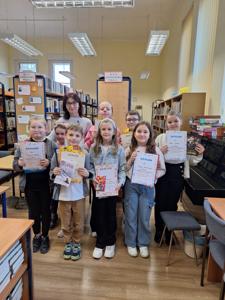 8 uczniów z kl. IIIa i IIIb 14.04.2025r. brało udział w gminnym konkursie czytelniczym pt. ,,W krainie baśni H.Ch. Andersena i Ch. Perrault " Konkurs był zorganizowany przez Miejsko Gminną Bibliotekę Publiczną w Woźnikach. Wszyscy uczestnicy najpierw pisali test ze znajomości baśni. Następnie najwyżej punktowani odpowiadali ustnie na pytania dotyczące bohaterów baśni. Hanna Oleksik uczennica kl. IIIa naszej szkoły, w tych zmaganiach zajęła III miejsce. Brawo dla wszystkich uczestników, którzy swój wolny czas poświęcili na przeczytanie 5 baśni i chętnie zgłosili się do konkursu.