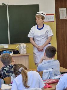 Prelekcja była bardzo interesująca i pouczająca. Uczniowie dowiedzieli się wiele o ważnym zawodzie pielęgniarki i zrozumieli, jak dużą rolę odgrywa w opiece nad zdrowiem. Na zakończenie dzieci podziękowały pani Małgorzacie za wizytę i wspólnie zrobiły pamiątkowe zdjęcie.