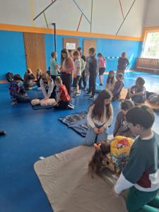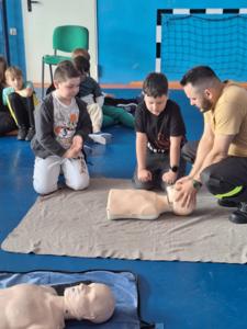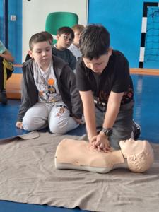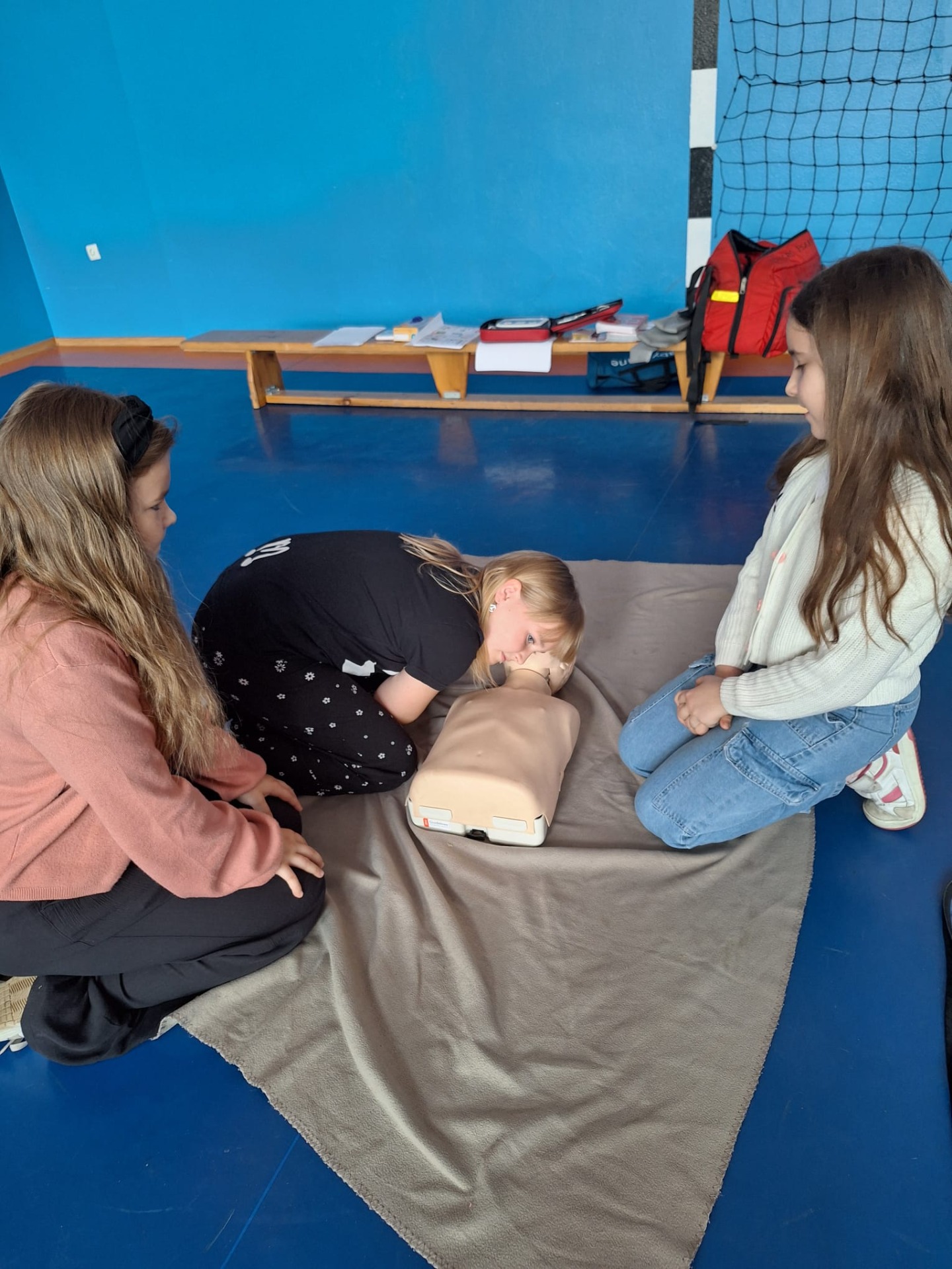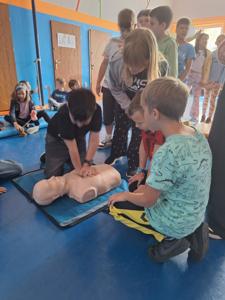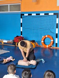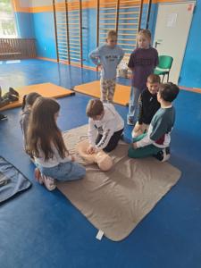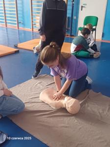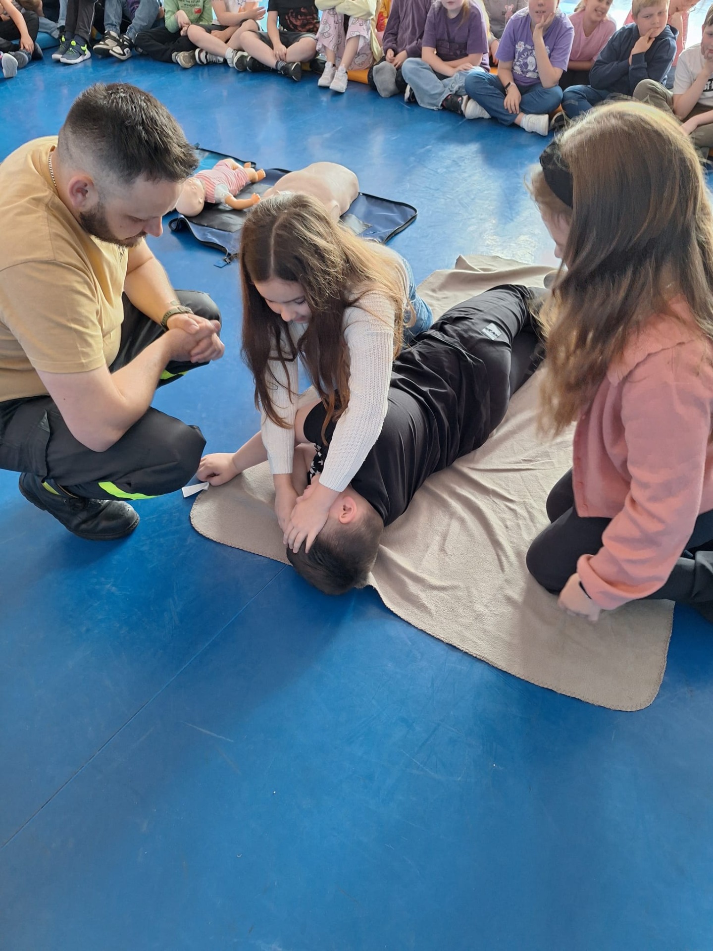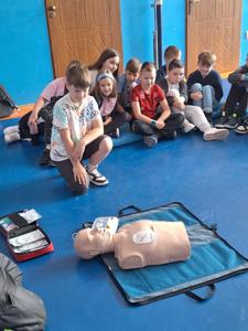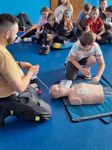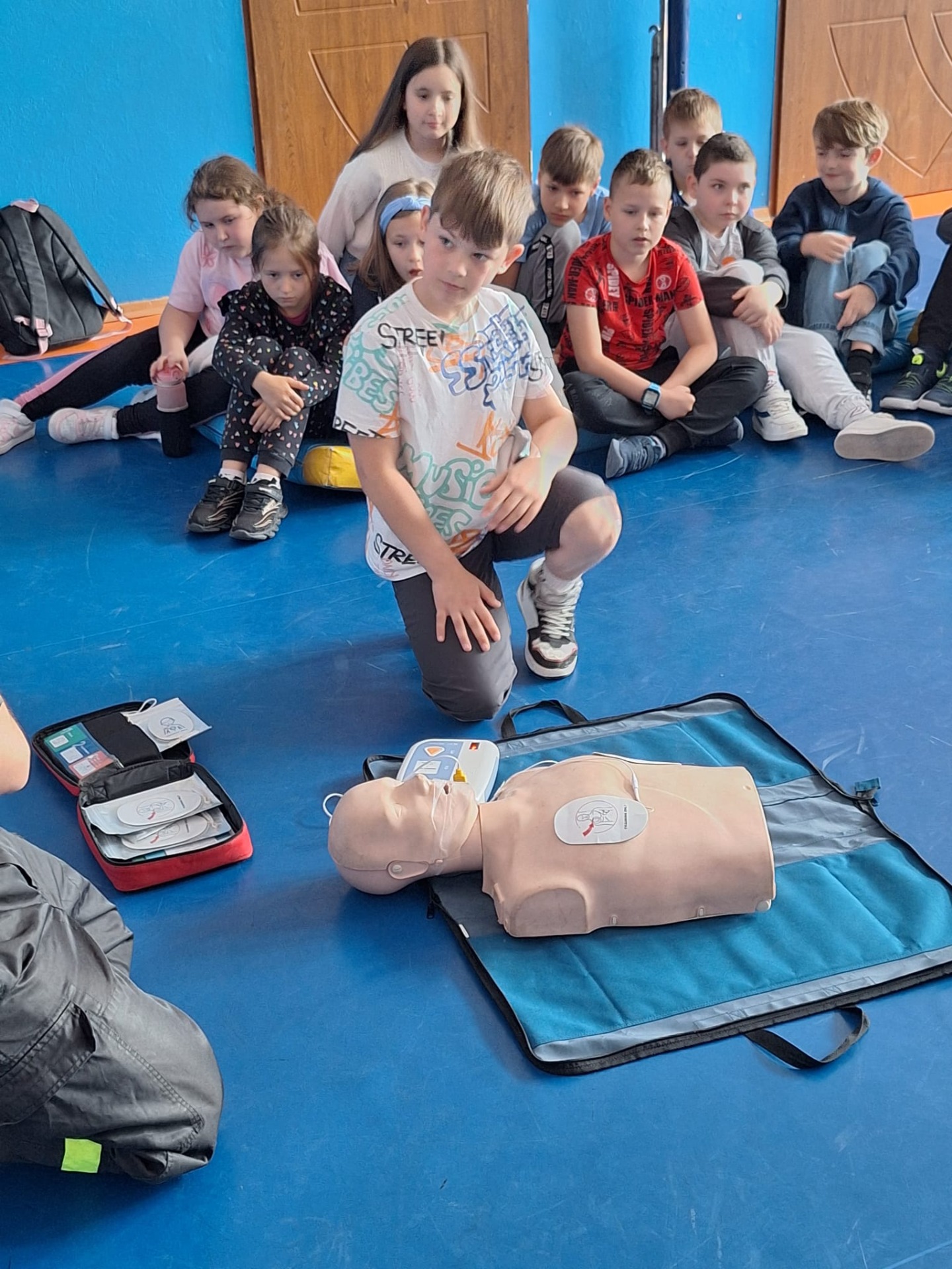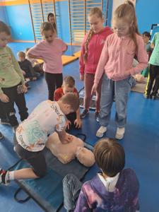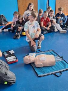 Dnia 10.06.2025 uczniowie klas trzecich uczestniczyli w warsztatach udzielania pierwszej pomocy. Spotkanie prowadził strażak OSP Psary p. Witold Kałdonek. Uczniowie utrwalili sobie w jaki sposób wezwać pomoc do osoby poszkodowanej. Rozmawiali o różnych sytuacjach, które mogą wydarzyć się w domu, szkole, na ulicy, placu zabaw czy nad wodą. Uczyli się w jaki sposób zareagować i pomóc. Poznali ,,Łańcuch Przeżycia". Ćwiczyli na manekinach poprawę resuscytacji, zapoznali się z działaniem Defibratora AED. Dzieci były bardzo zainteresowane tematem spotkania. Na zakończenie warsztatów uczniowie podziękowali prowadzącemu i złożyli życzenia dla wszystkich strażaków.