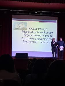 W dniu 6 czerwca 2025r.nasi uczniowie Kacper Błaszczyk i Paweł Podgarbi brali udział w uroczystym rozdaniu nagród XXIII edycji Regionalnych Konkursów organizowanych przez Jurajskie Stowarzyszenie Nauczycieli Twórczych w Miejsko-Gminnym Ośrodku Promocji Kultury w Koziegłowach. Uczniowie zostali laureatami konkursu matematycznego w kategorii klas IV-VI. Serdecznie gratulujemy i życzymy dalszych sukcesów. Podziękowania składamy także opiekunowi Pani Jadwidze Badorze.