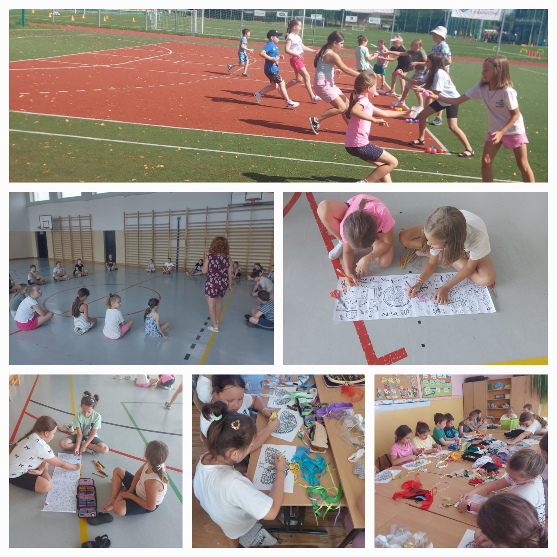 Pierwszego dnia uczestnicy wzięli udział w zajęciach sportowych oraz różnorodnych rozgrywkach. We wtorek dziewczynki miały okazję zrobić sobie kolorowe warkoczyki, a wszyscy wspólnie tworzyli obrazy ze ścinek i bibuły podczas zajęć plastycznych. W środę dzieci samodzielnie przygotowały pizzę, a następnie brały udział w zabawach takich jak zgadywanki i kalambury.