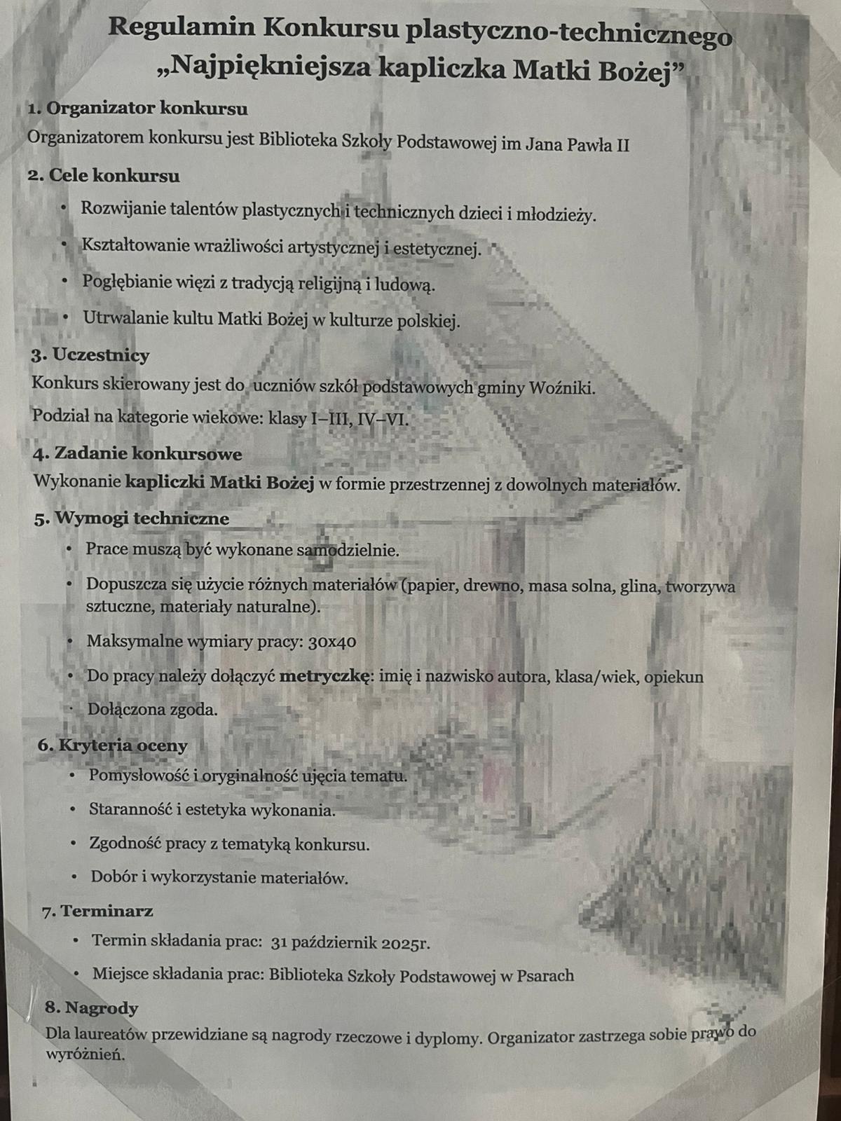 Konkurs na "Najpiękniejszą kapliczkę Matki Bożej" Zdjęcia Zobacz również Ogólnopolskie konkursy plastyczne Konkurs na najładniejszy różaniec. Wyniki Powiatowego Konkursu Fotograficznego „Dzieło... Konkurs na "Najpiękniejszą kapliczkę Matki Bożej" 03 października 2025 Konkursy Wydrukuj Udostępnij Wyświetlono: 14