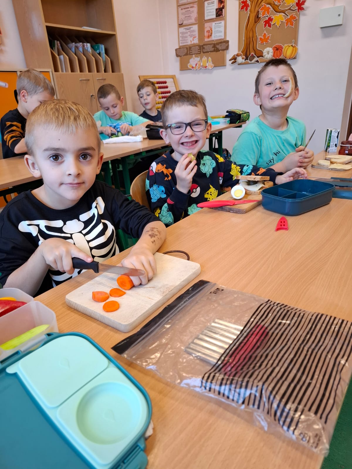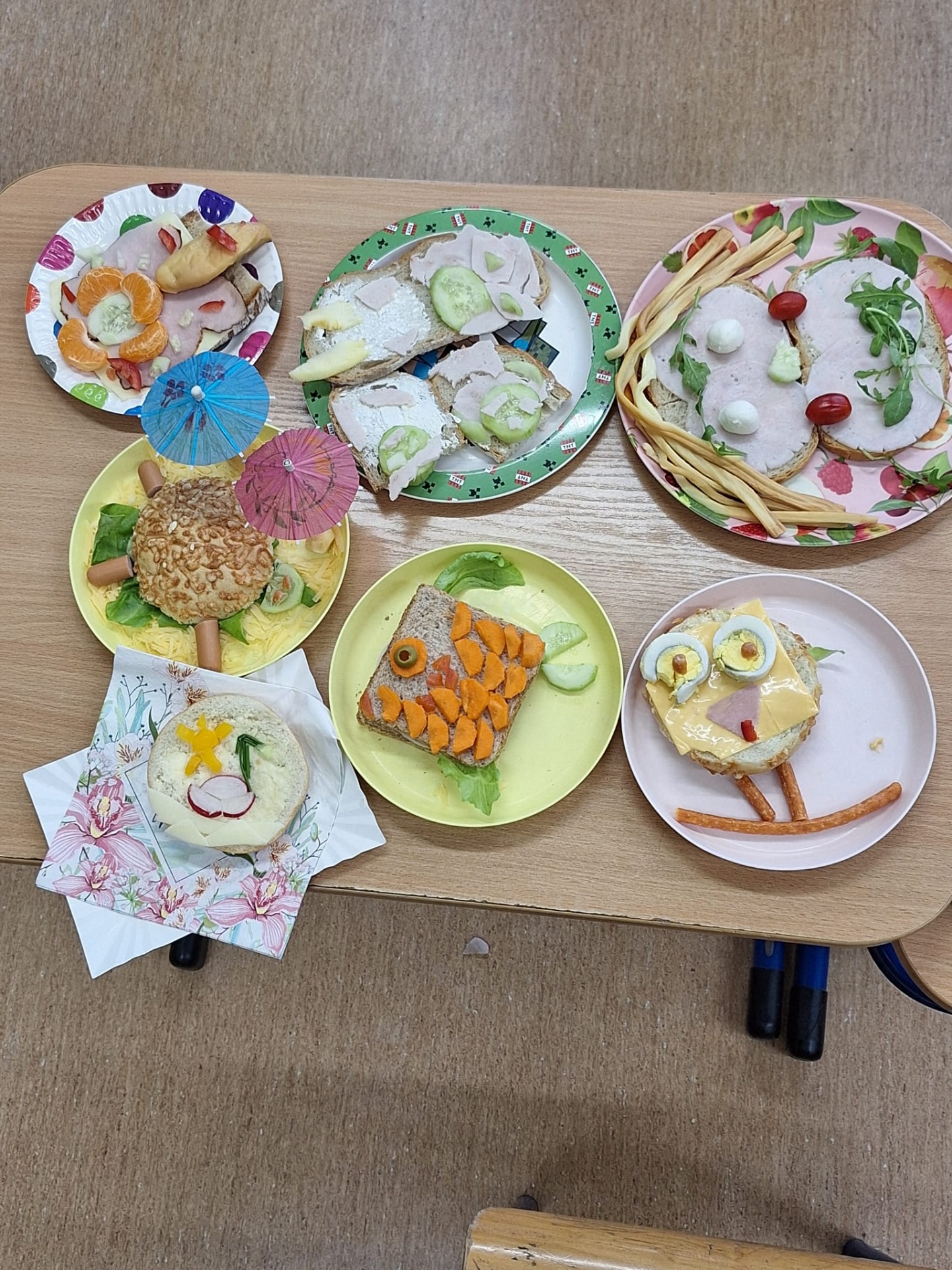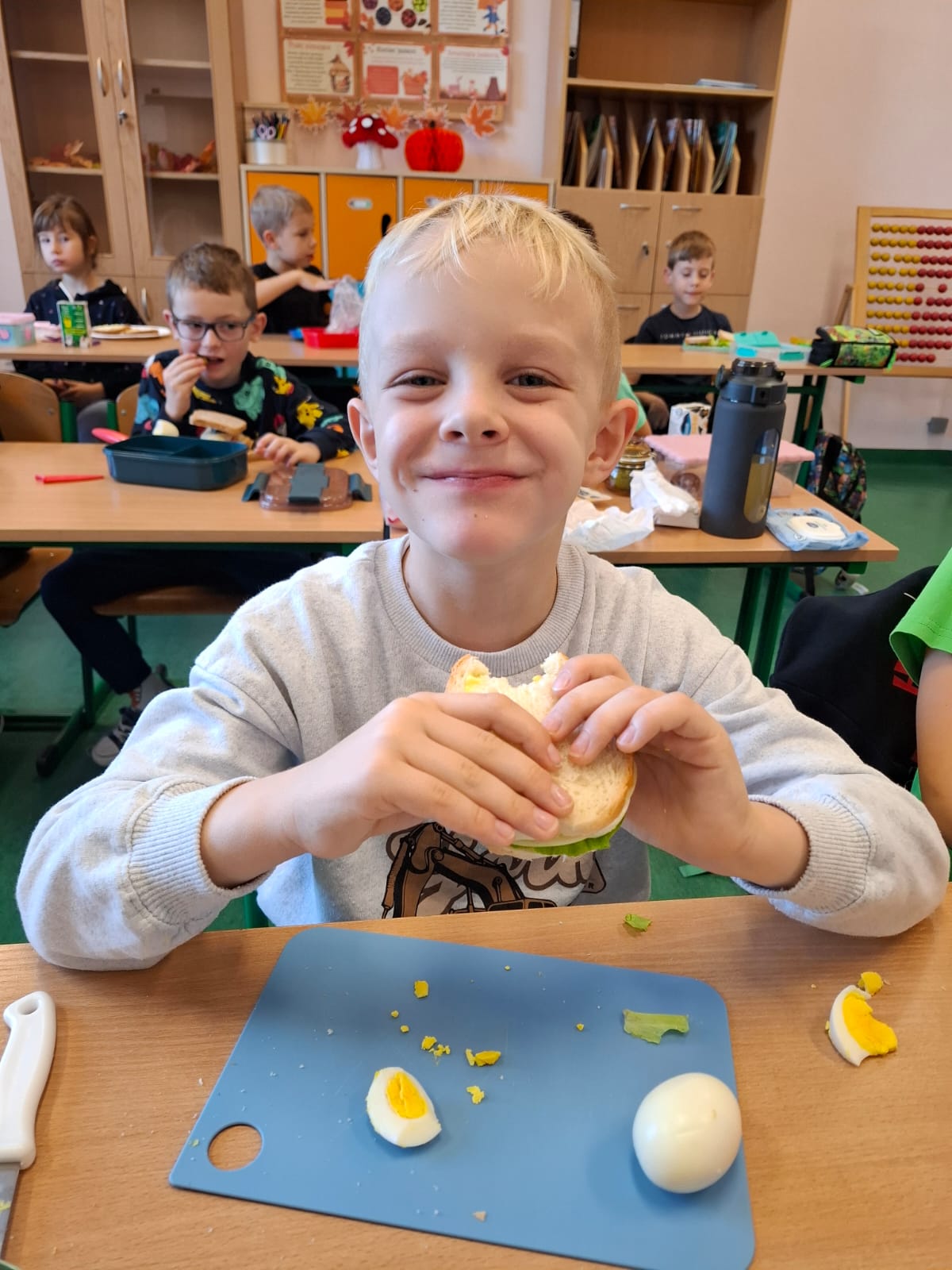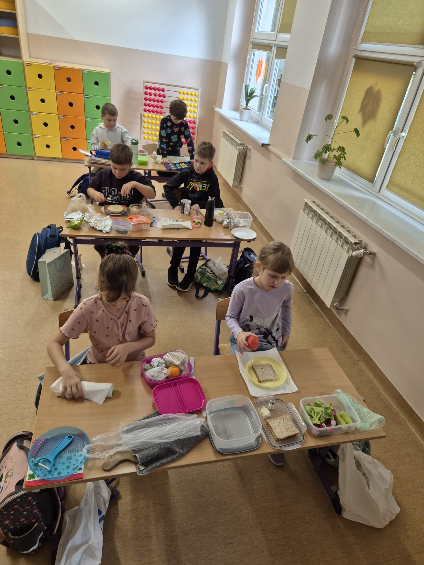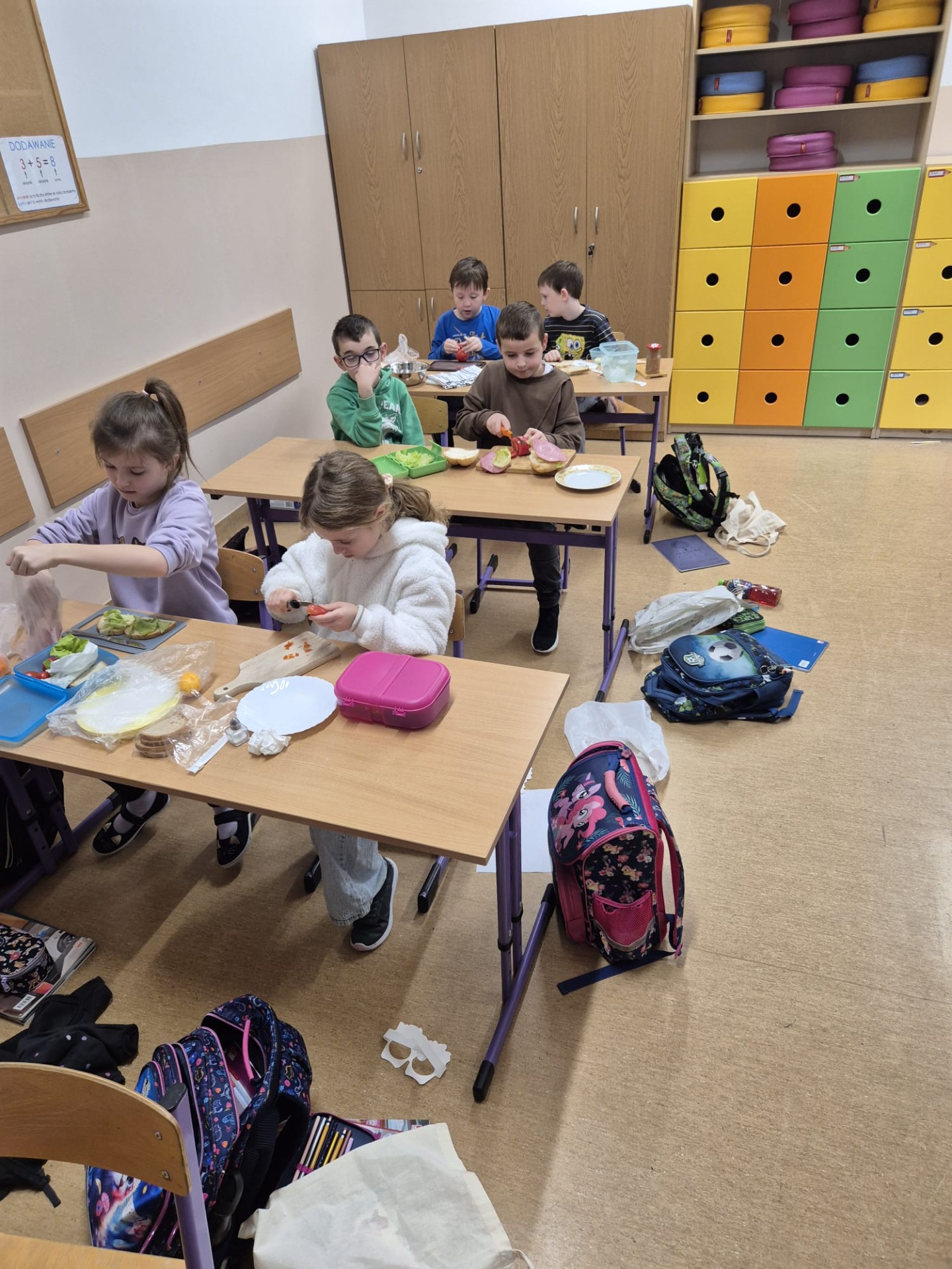 Dzisiaj klasy 1-3 brały udział w akcji ,,Śniadanie daje moc". Poznały zasady przygotowania zdrowego śniadania oraz jego znaczenie na prawidłowe funkcjonowanie organizmu w ciągu dnia. Każde dziecko samodzielnie przygotowało pyszne kanapki wg swojego pomysłu. Potem nastąpiła degustacja. Była to bardzo ciekawa lekcja samodzielności i kreatywności.
