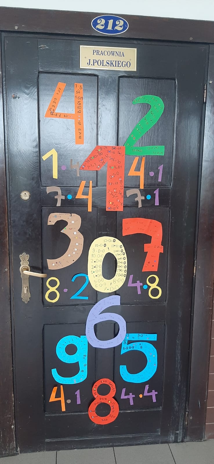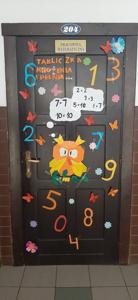 21 listopada obchodziliśmy w naszej szkole Światowy Dzień Tabliczki Mnożenia. Z okazji tego święta uczniowie wzięli udział w konkursie indywidualnym na "Zakładkę matematyczną" oraz konkursie klasowym na dekorację drzwi klasowych. Motywem przewodnim była oczywiście tabliczka mniożenia. Każdy uczeń pisał tego dnia dziesięciominutowy test matematyczny z tabliczką mnożenia w tle. Wyniki konkursu zostaną ogłoszone w późniejszym terminie.
