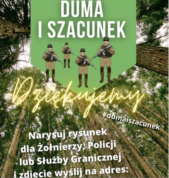 Fotografie prac, rysunki, obrazki, grafiki, pocztówki z podziękowaniami dla funkcjonariuszy Straży Granicznej, Wojska Polskiego oraz Policji należy wysyłać na adres: dumaiszacunek@gmail.com