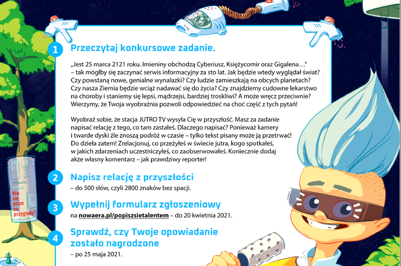 13 kwietnia 2021 Konkursy Konkurs literacki "Popisz się talentem 2021" Weź udział w piątej, jubileuszowej edycji największego konkursu literackiego dla uczniów szkół podstawowych! Kto się pisze na przygodę? Tak – to już piąta, jubileuszowa... Czytaj więcej