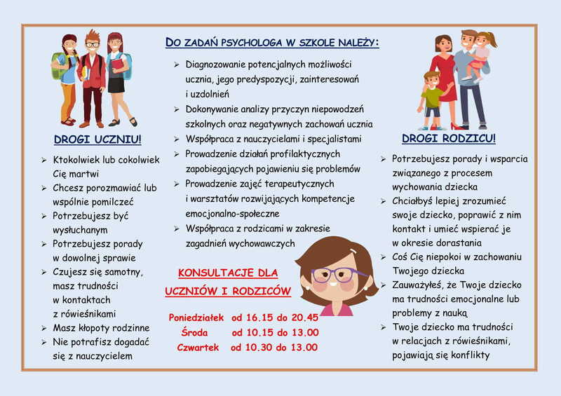 14 września 2022 Rodzice Oferta Ubezpieczenia Szanowni Rodzice w roku szkolnym 2022/2023 możecie Państwo skorzystać z oferty ubezpieczenia swojego dziecka w PZU. Ubezpieczenie dziecka jest dobrowolne a przedstawiona oferta nie jest konieczna do wyboru.... Czytaj więcej