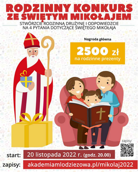 02 listopada 2022 Rodzice RODZINNY KONKURS ZE ŚWIĘTYM MIKOŁAJEM Szanowni Państwo, serdecznie zapraszamy rodziny dzieci ze społeczności szkolnej do udziału w Rodzinnym Konkursie ze świętym Mikołajem Akademii Młodzieżowej prowadzonej przez Fundację Szczęśliwe Dzieciństwo.... Czytaj więcej